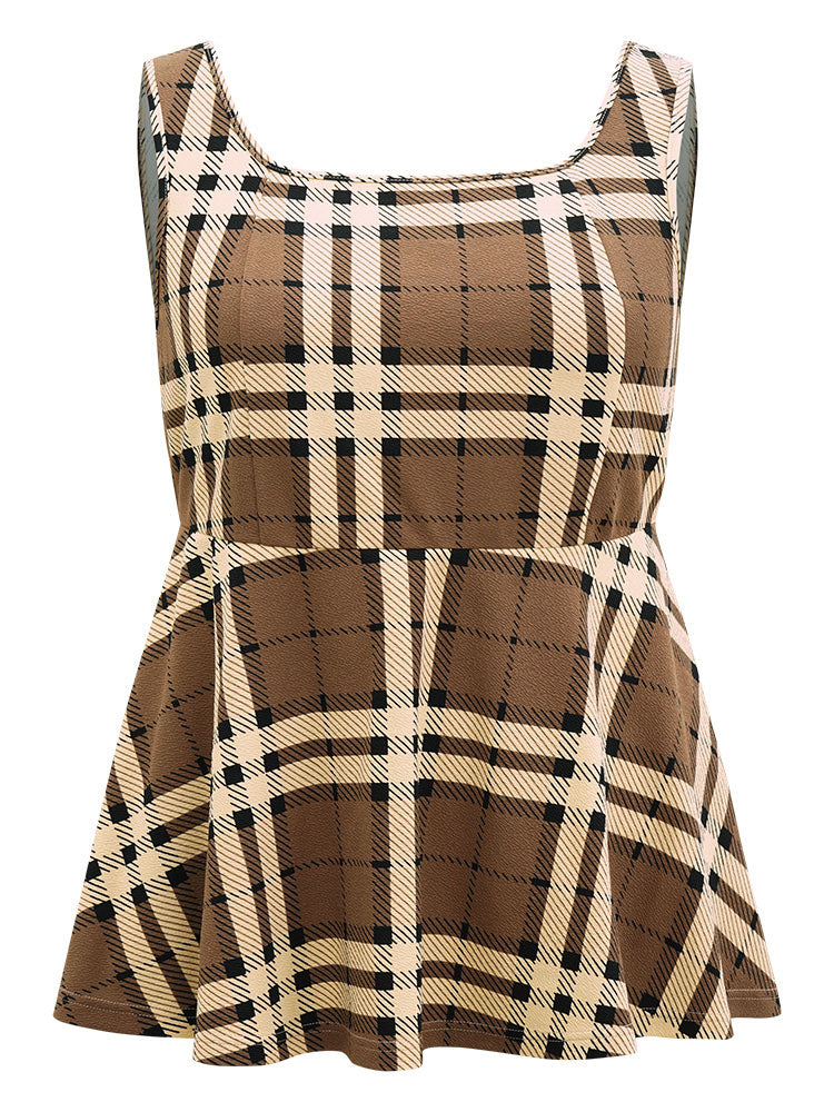Shop Plaid Contrast Flutter Hem Tank Top now and redefine your style with confidence at Sweetccc. Tailored for mid and plus-size women. This trendy Tops Women. sizes 10-30. Season:Winter;Color:LightBrown;Style:Casual;Pattern Type:Plaid;Neckline:Square Neck;Sleeve Type:Sleeveless;Details:Contrast;Pocket:No-pocket