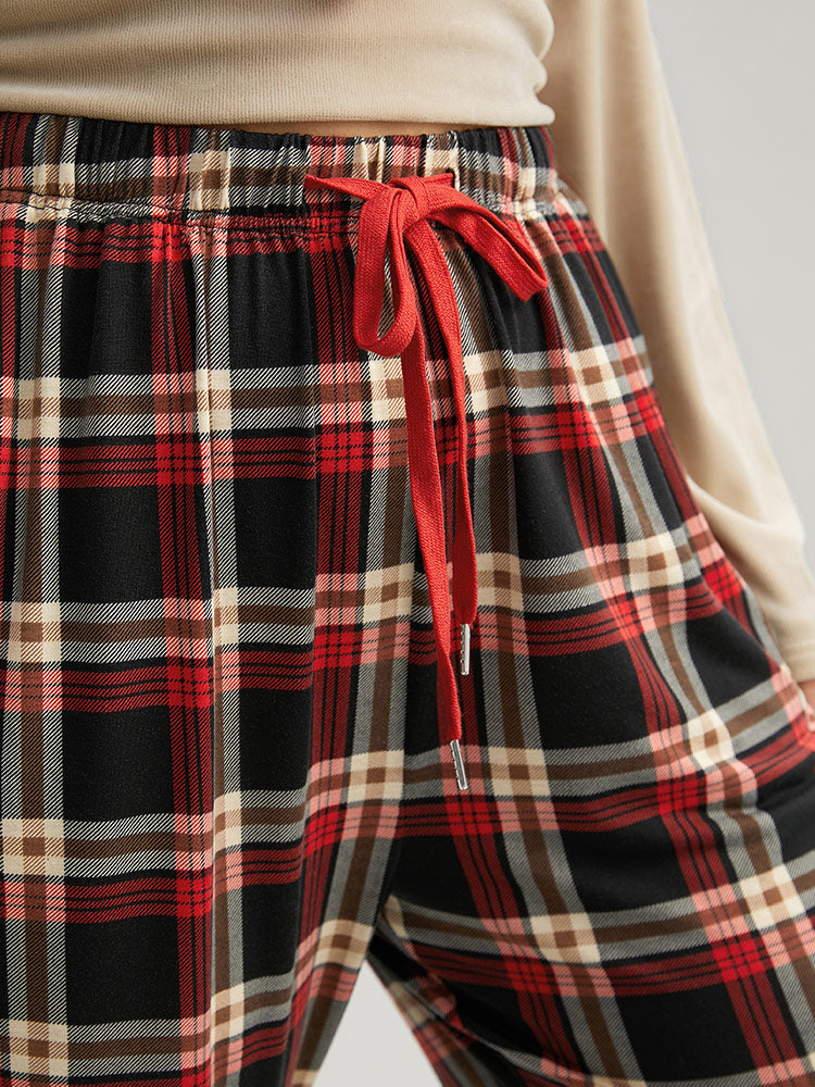 Shop Plaid Elastic Waist Pocket Drawstring Sleep Bottoms now and redefine your style with confidence at Sweetccc. Tailored for mid and plus-size women. This trendy Loungewear Women. sizes 10-30. Color:Red;Style:Casual;Neckline:Shoulderless;Sleeve Type:Sleeveless;Pattern Type:Plaid;Details:Pocket. Elastic Waist. Drawstring;Pocket:It is perfectly sized to carry a phone.;Belt:No-belt;Closure Type:Elastic Waist