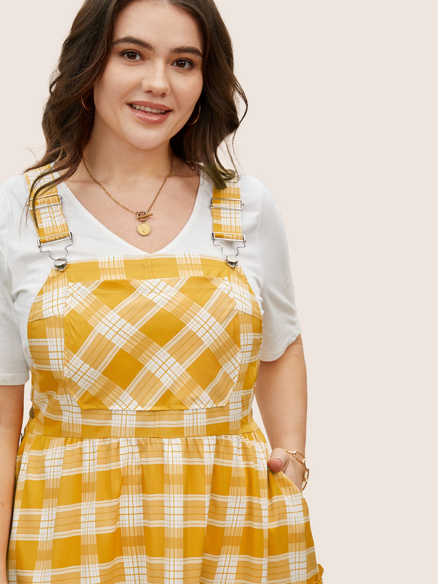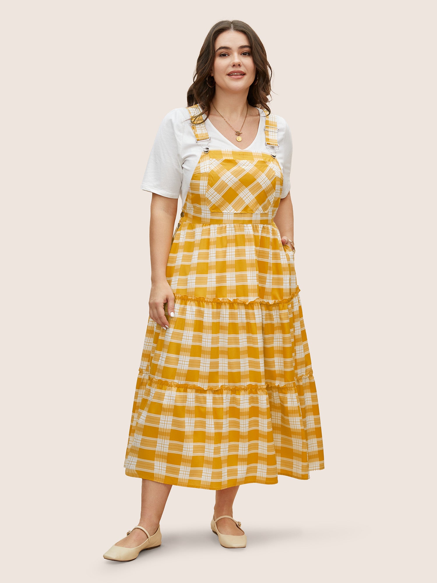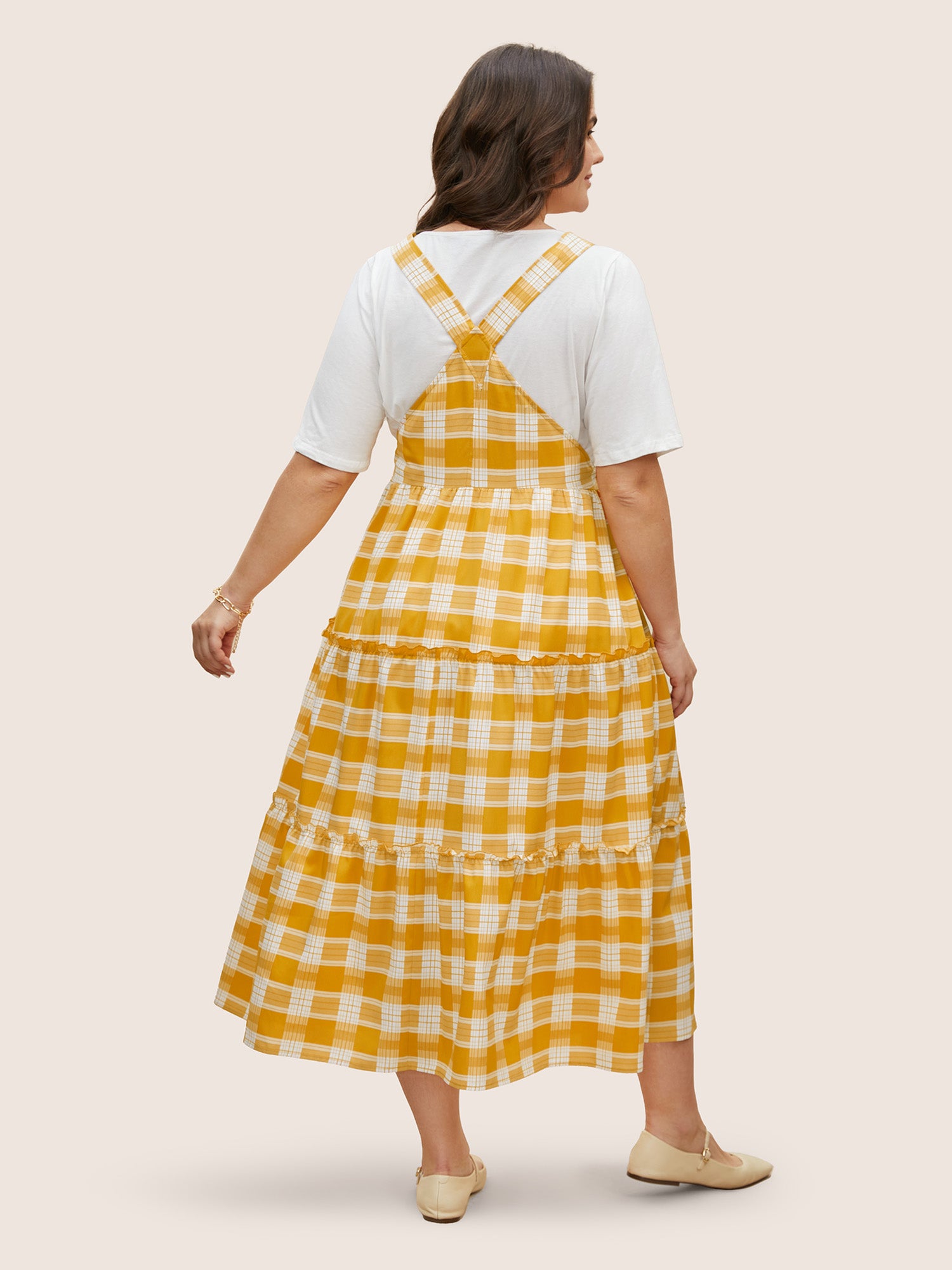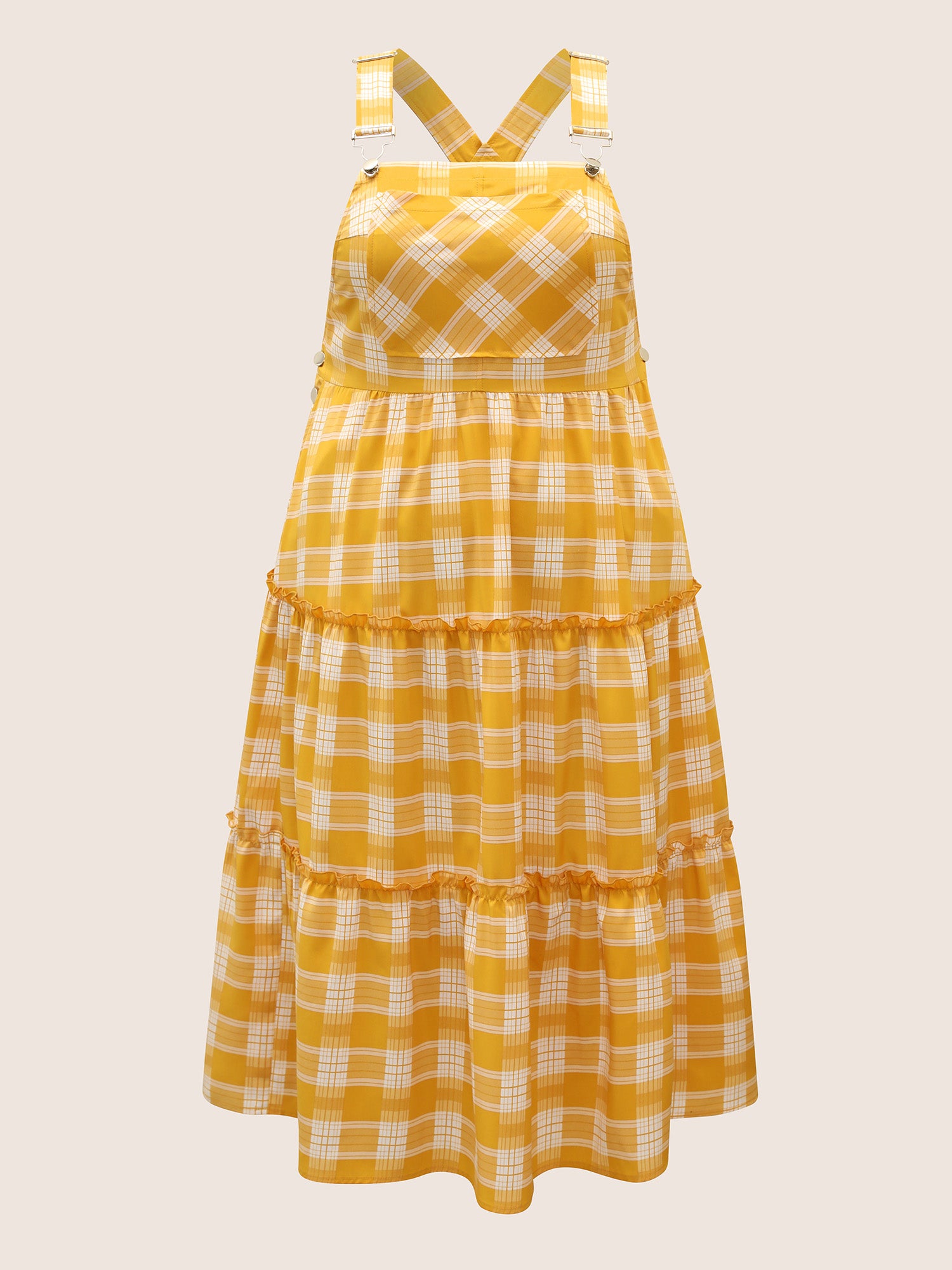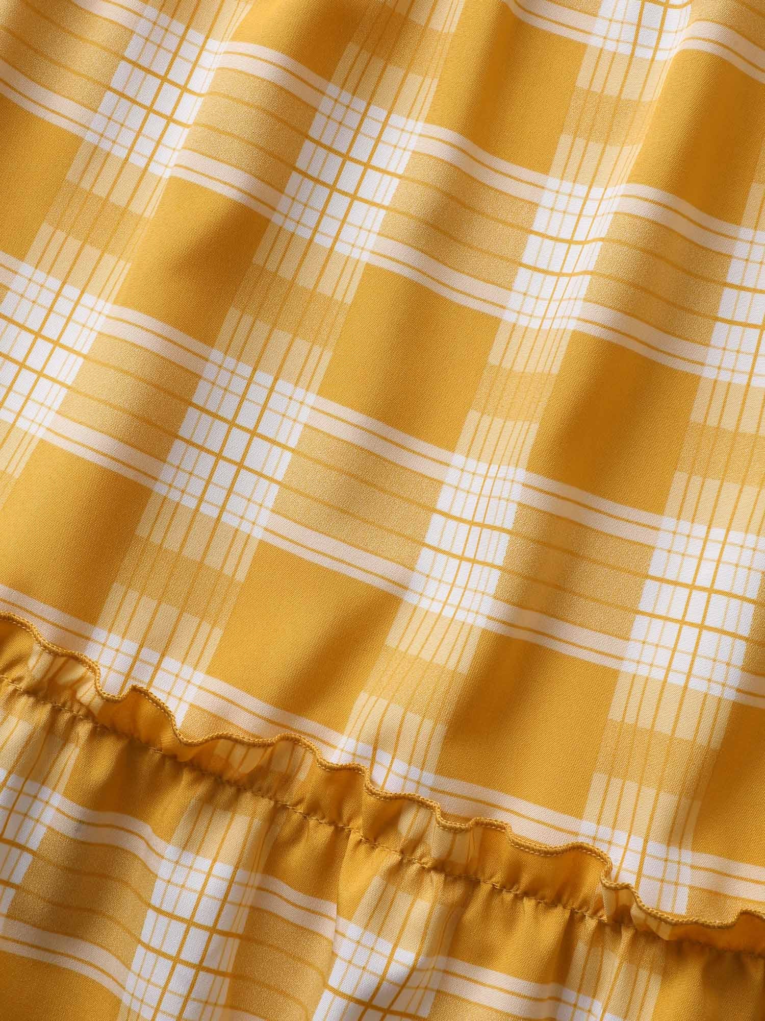 Shop Plaid Frill Trim Patchwork Hem Dress now and redefine your style with confidence at Sweetccc. Tailored for mid and plus-size women. This trendy Dress. sizes 10-30. You can never go wrong with Sweetccc Dresses. Color:Turmeric;Style:Casual;Neckline:Non;Sleeve Type:Sleeveless;Prints:Plaid;Details:Tiered. Frill Trim;Pocket:Side seam pocket;Belt:No-belt;Closure Type:Non