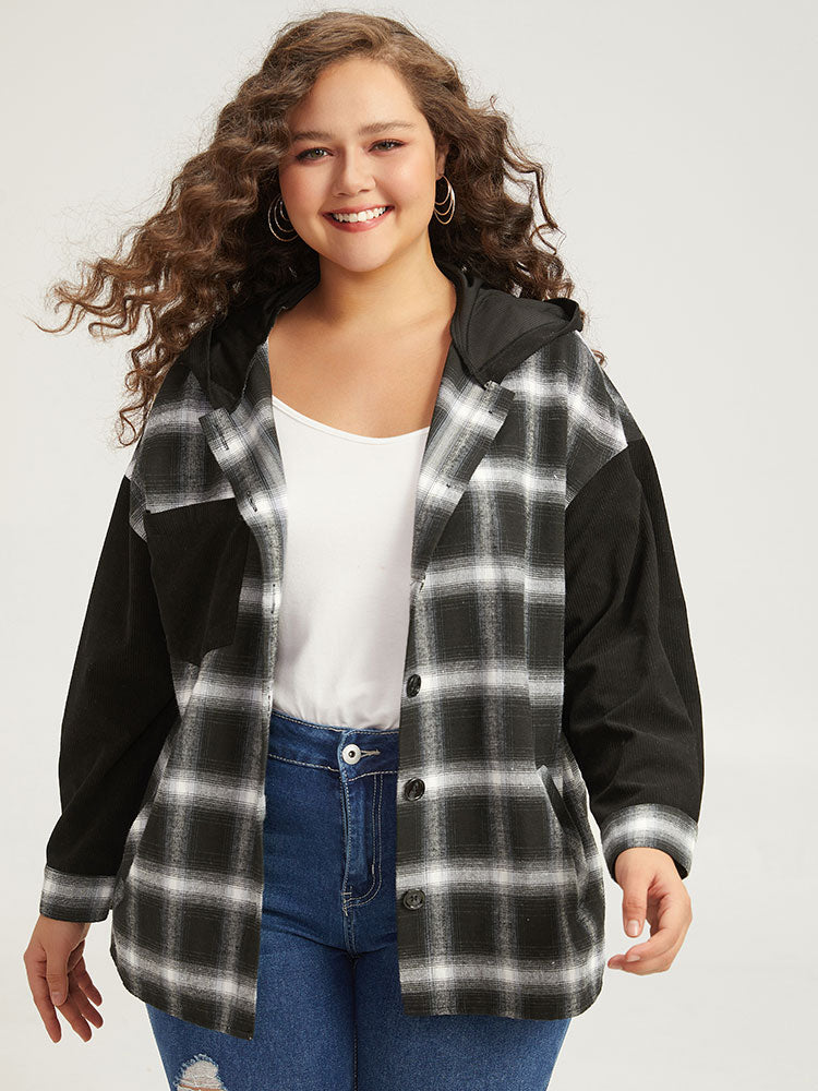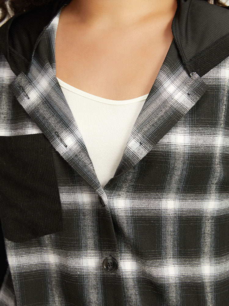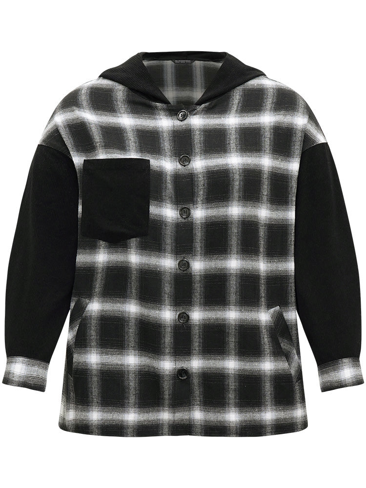 Shop Plaid Hooded Patched Pocket Button Up Patchwork Coat now and redefine your style with confidence at Sweetccc. Tailored for mid and plus-size women. This trendy Outerwear Women. sizes 10-30. Color:Black;Style:Casual;Pattern Type:Plaid;Details:Pocket. Button. Patchwork. Contrast;Pocket:It is perfectly sized to carry a phone.;Belt:No-belt;Closure Type:Button;Lining:No-lining