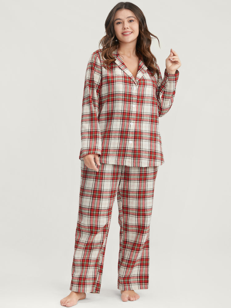Shop Plaid Lapel Collar Button Up Pajama Set now and redefine your style with confidence at Sweetccc. Tailored for mid and plus-size women. This trendy Loungewear Women. sizes 10-30. Season:Winter;Color:Scarlet;Neckline:Lapel Collar;Sleeve Type:Regular Sleeve;Details:Pocket. Elastic Waist;Pocket:No-pocket;Belt:No-belt