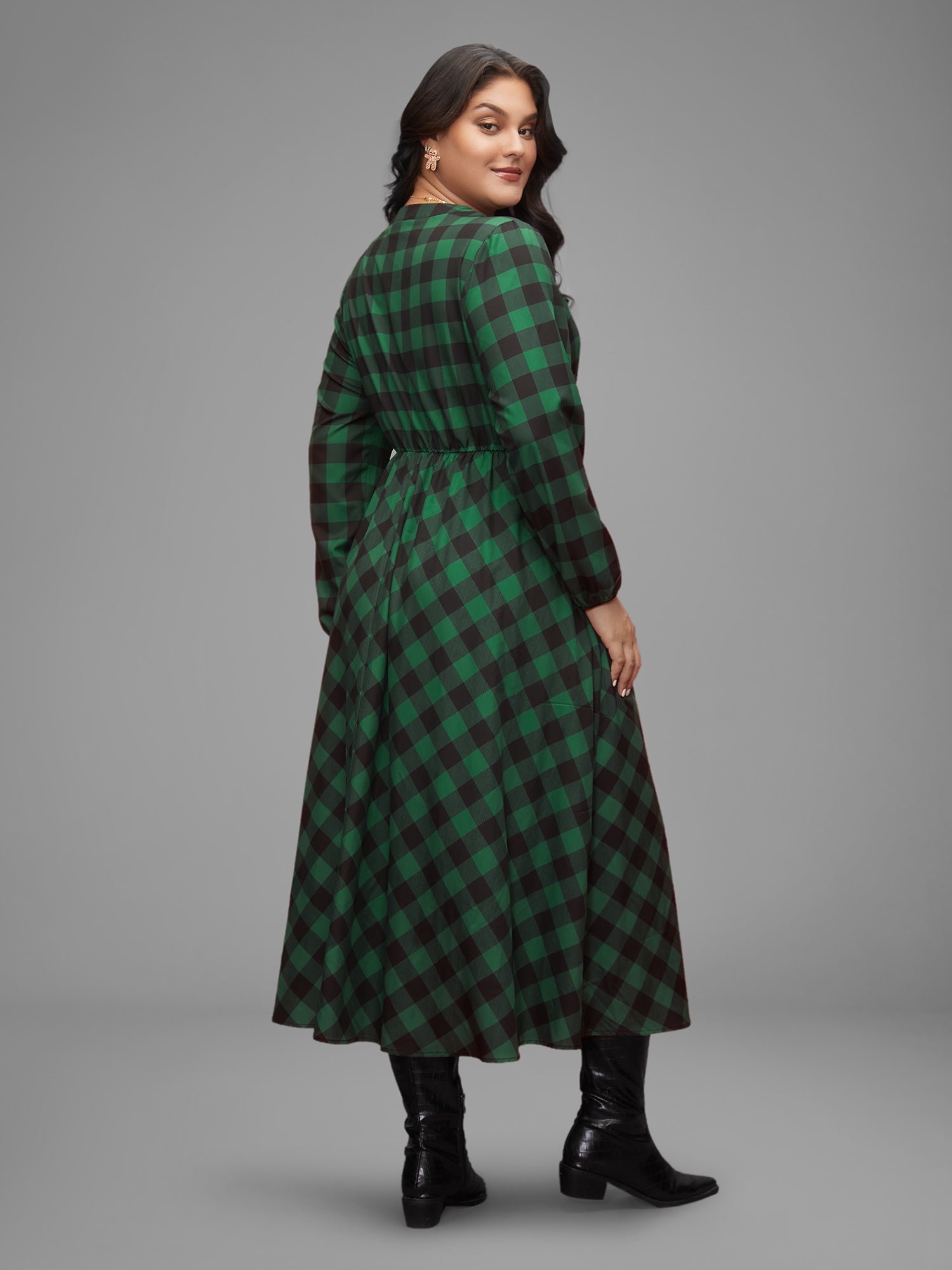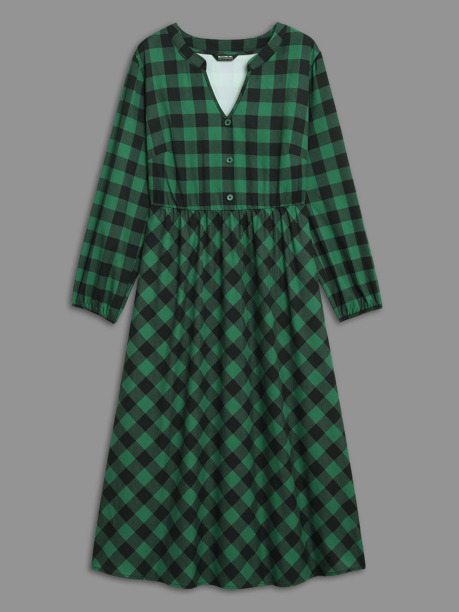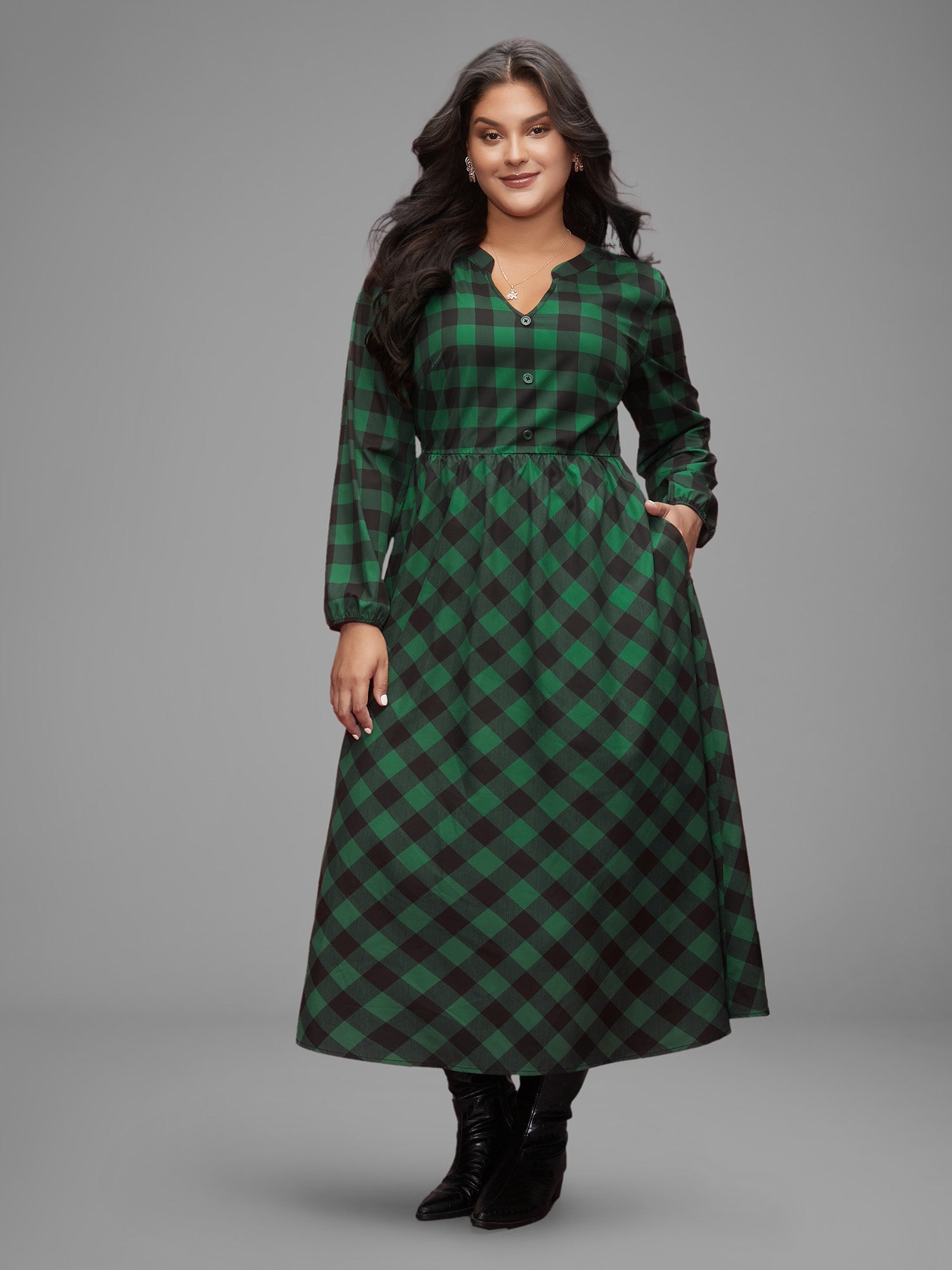 Shop Plaid Notched Collar Midi Dress now and redefine your style with confidence at Sweetccc. Tailored for mid and plus-size women. This trendy Dress. sizes 10-30. You can never go wrong with Sweetccc Dresses. Season:Winter;Color:DarkGreen;Style:Elegant;Neckline:Notched collar;Sleeve Type:Lantern Sleeve;Prints:Plaid;Details:Button;Pocket:Side seam pocket;Belt:No-belt;Closure Type:Non