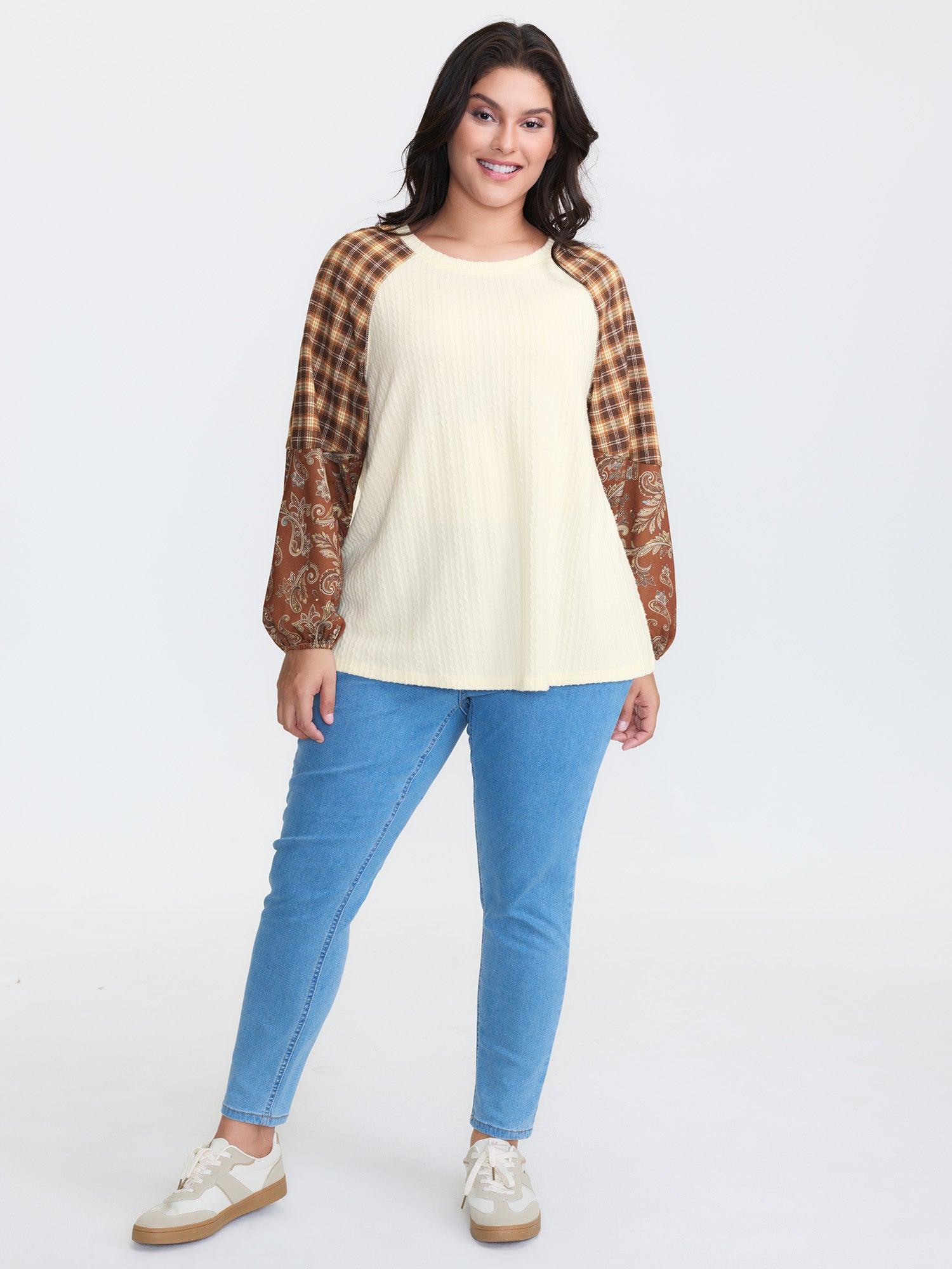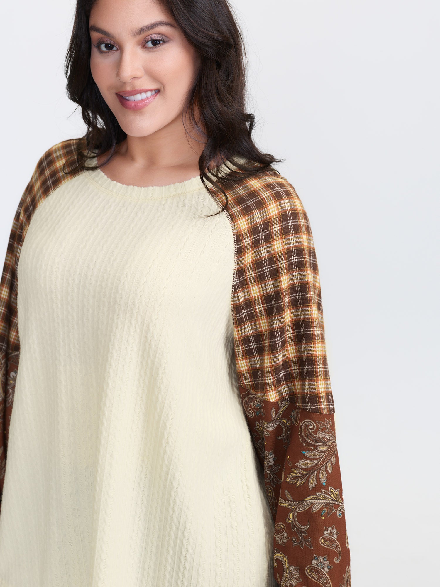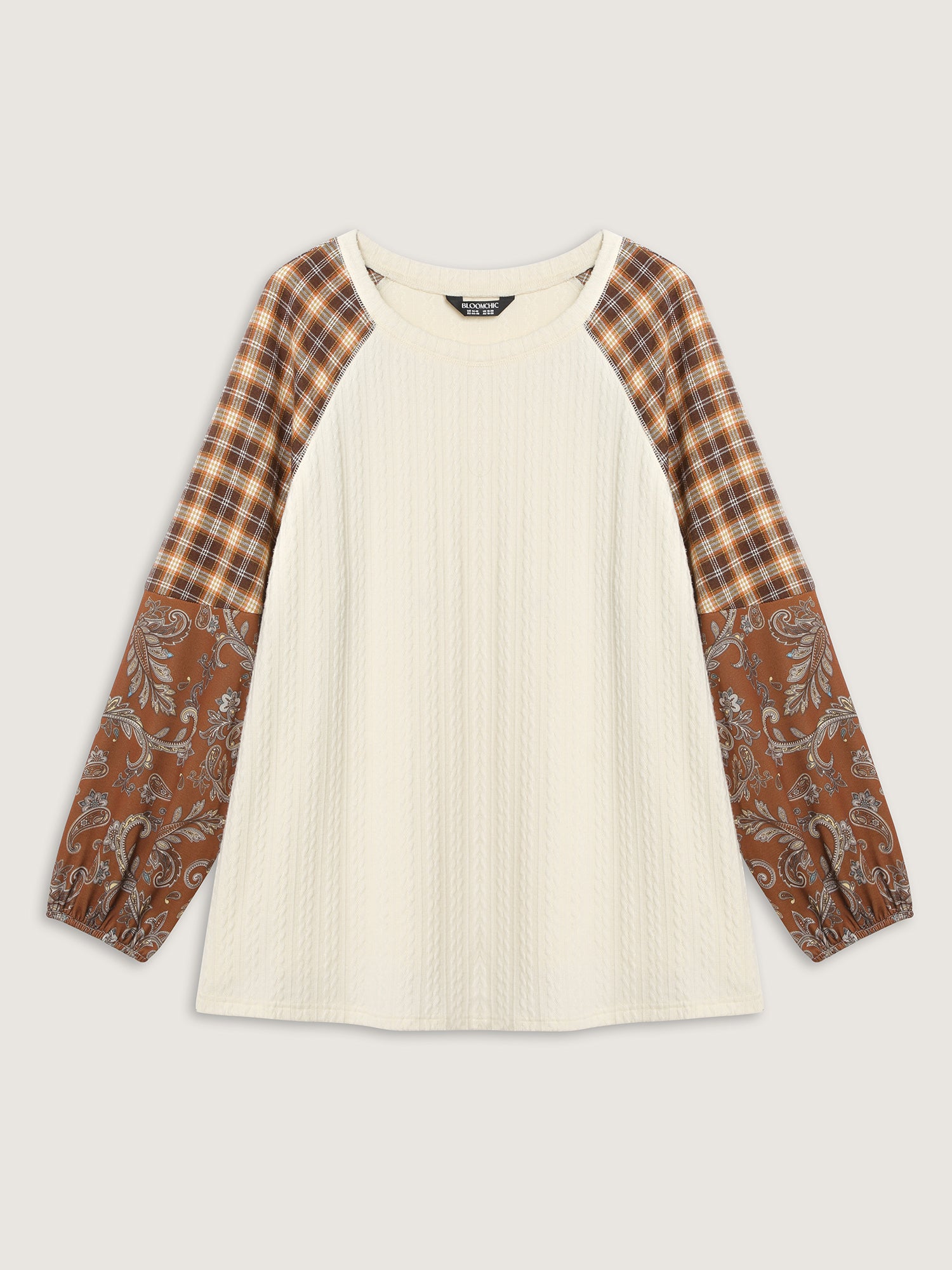 Shop Plaid Paisley Print Textured Sweatshirt now and redefine your style with confidence at Sweetccc. Tailored for mid and plus-size women. This trendy Tops Women. sizes 10-30. Color:Ivory;Style:Leisure;Neckline:Round Neck;Sleeve Type:Regular Sleeve;Prints:Non;Details:Texture. Contrast;Pocket:No-pocket;Belt:No-belt;Closure Type:Non