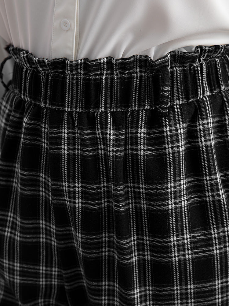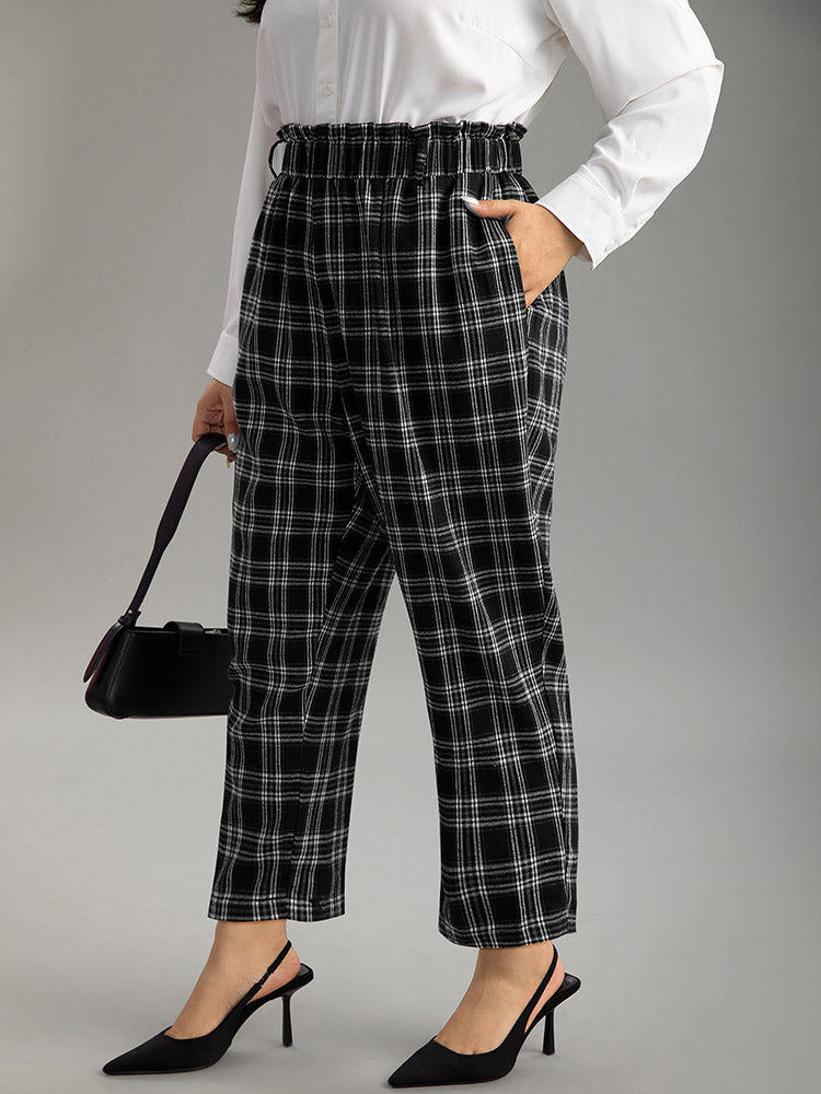 Shop Plaid Paperbag Waist Pocket Pants now and redefine your style with confidence at Sweetccc. Tailored for mid and plus-size women. This trendy Bottoms Women. sizes 10-30. Season:Winter;Color:Black;Style:Office;Waist Design:High Rise;Pattern Type:Plaid;Details:Pocket. Elastic Waist. Frill Trim;Pocket:It is perfectly sized to carry a phone.;Belt:No-belt;Closure Type:Elastic Waist