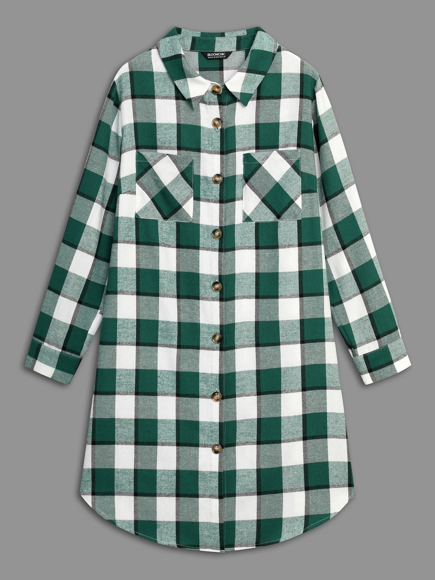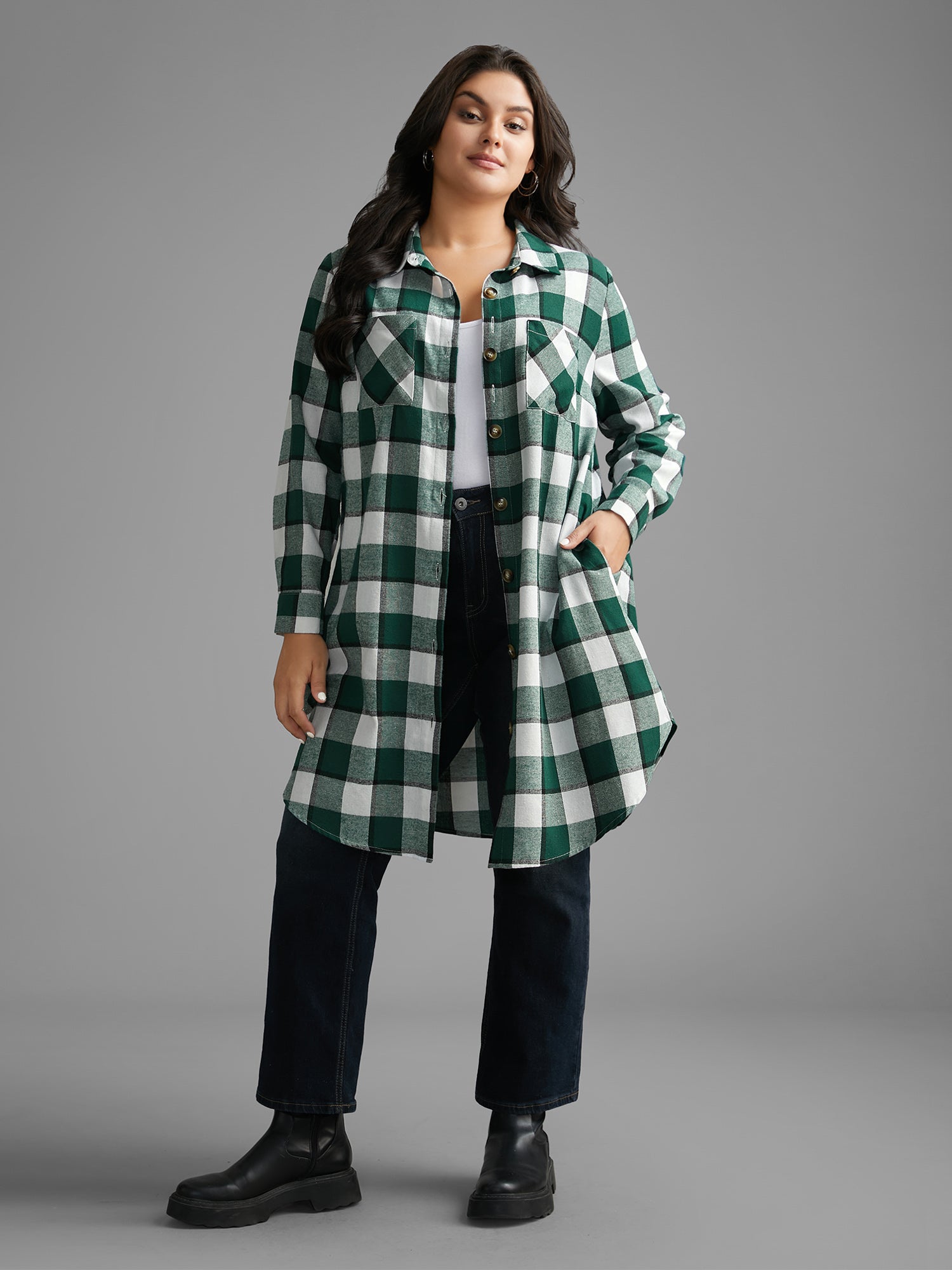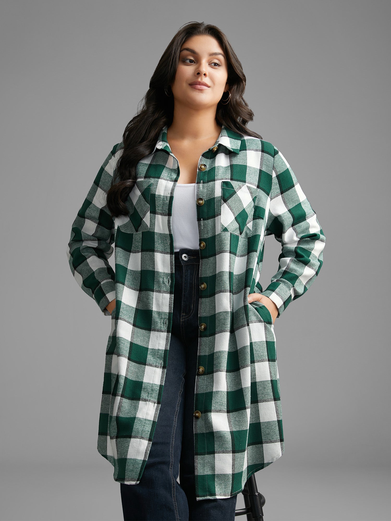 Shop Plaid Patched Pocket Arc Hem Jacket now and redefine your style with confidence at Sweetccc. Tailored for mid and plus-size women. This trendy Outerwear Women. sizes 10-30. Season:Winter;Color:DarkGreen;Style:Casual;Prints:Plaid;Details:Button;Pocket:Side seam pocket;Belt:No-belt;Closure Type:Open front with closure;Lining:No-lining
