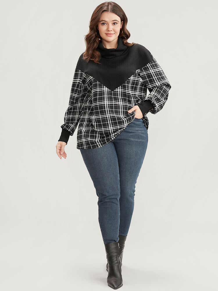 Shop Plaid Patchwork Button Detail Funnel Neck Sweatshirt now and redefine your style with confidence at Sweetccc. Tailored for mid and plus-size women. This trendy Tops Women. sizes 10-30. Season:Winter;Color:Black;Neckline:Turtleneck;Sleeve Type:Lantern Sleeve;Details:Button. Patchwork. Contrast;Pocket:No-pocket;Belt:No-belt