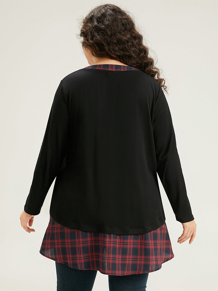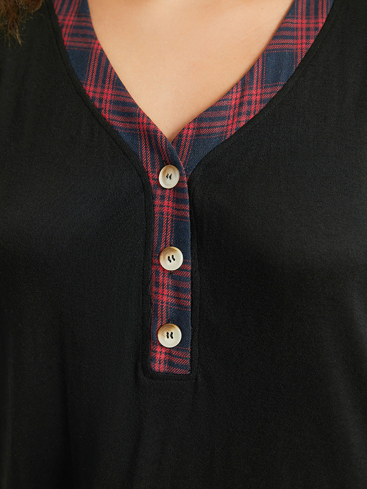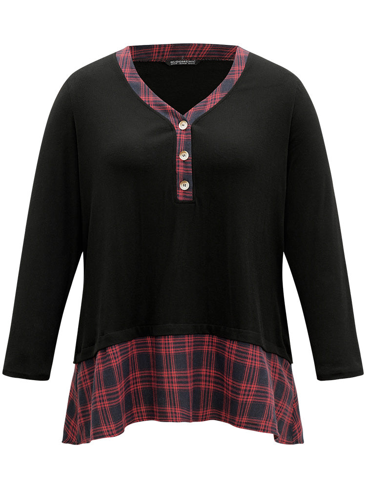 Shop Plaid Patchwork Button Through T-shirt now and redefine your style with confidence at Sweetccc. Tailored for mid and plus-size women. This trendy Tops Women. sizes 10-30. Season:Fall;Color:Black;Style:Casual;Pattern Type:Plaid;Neckline:V-neck;Sleeve Type:Regular Sleeve;Details:Button. Patchwork;Pocket:No-pocket