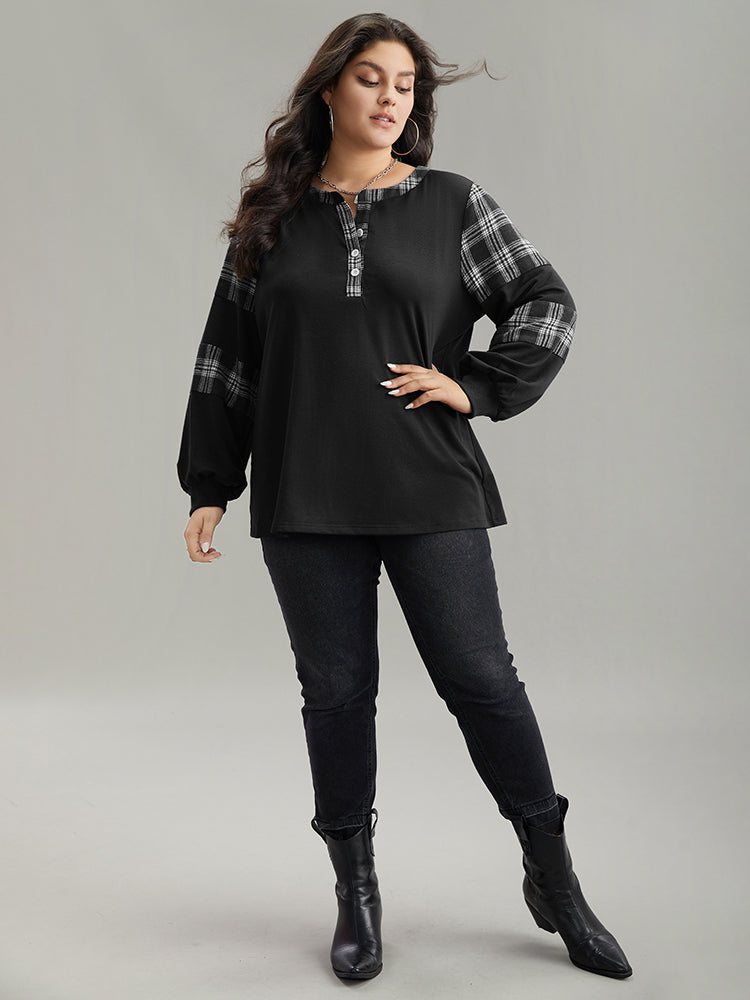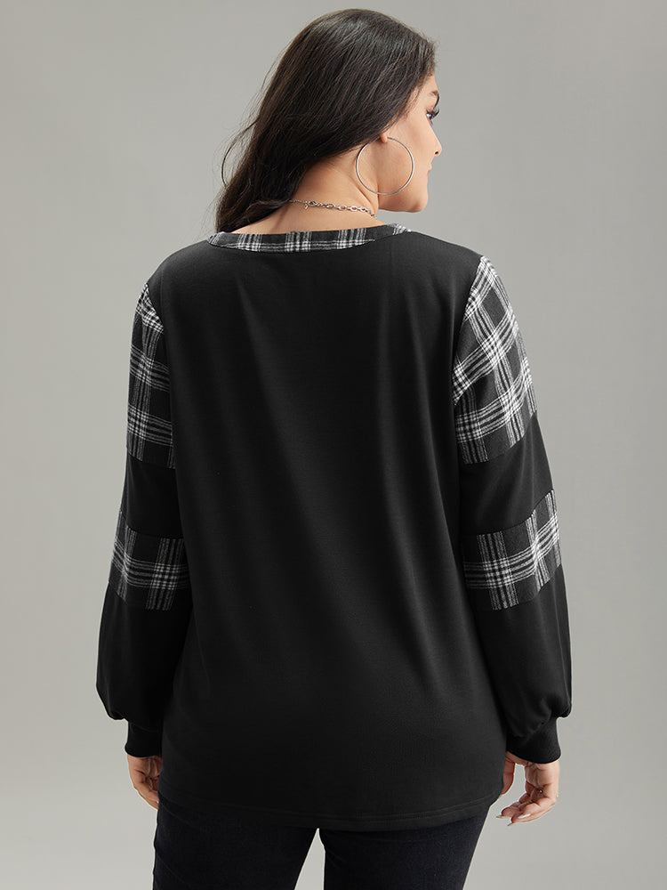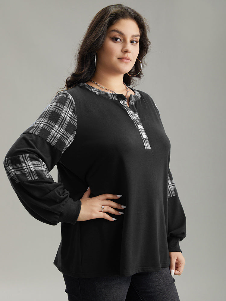 Shop Plaid Patchwork Button Up Rib Knit Sweatshirt now and redefine your style with confidence at Sweetccc. Tailored for mid and plus-size women. This trendy Tops Women. sizes 10-30. Color:Indigo.Black;Style:Casual;Neckline:Open Front;Sleeve Type:Regular Sleeve;Pattern Type:Plaid;Details:Button. Patchwork. Elastic cuffs;Pocket:No-pocket;Belt:No-belt