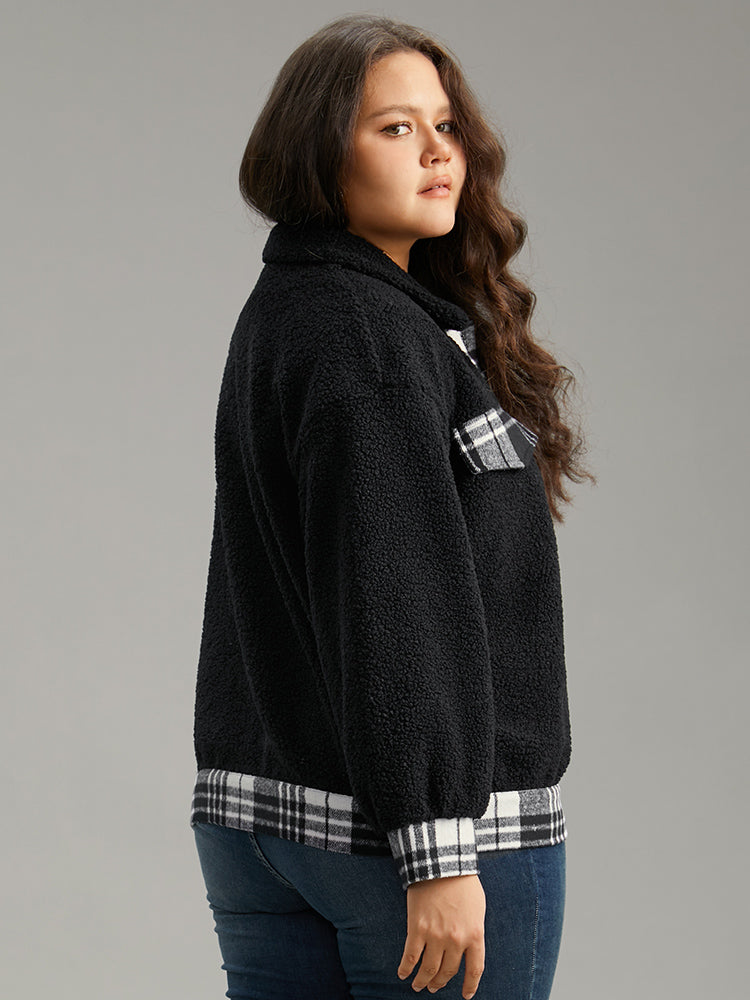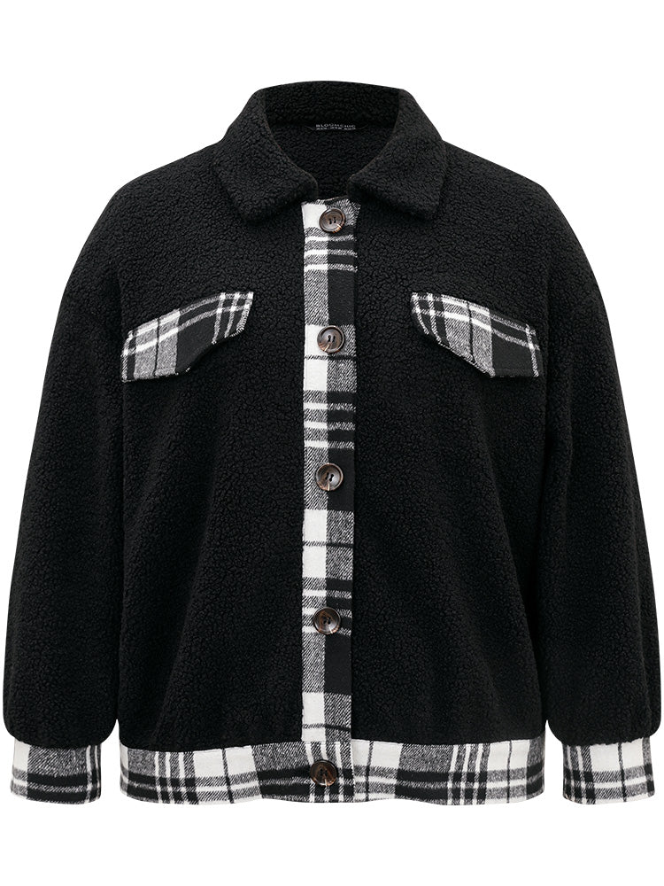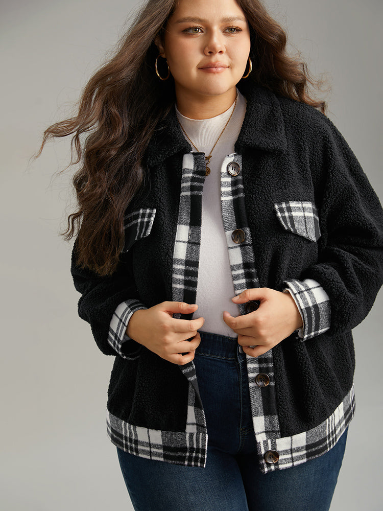 Shop Plaid Patchwork Button Up Teddy Shacket now and redefine your style with confidence at Sweetccc. Tailored for mid and plus-size women. This trendy Outerwear Women. sizes 10-30. Season:Winter;Color:Black;Style:Casual;Pattern Type:Plaid;Details:Button. Patchwork. Contrast;Pocket:No-pocket;Belt:No-belt;Closure Type:Button;Lining:No-lining