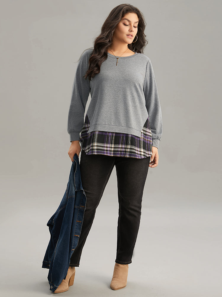 Shop Plaid Patchwork Contrast Crew Neck Sweatshirt now and redefine your style with confidence at Sweetccc. Tailored for mid and plus-size women. This trendy Tops Women. sizes 10-30. Season:Winter;Color:Gray;Style:Casual;Neckline:Round Neck;Sleeve Type:Regular Sleeve;Pattern Type:Plaid;Details:Patchwork. Contrast;Pocket:No-pocket;Belt:No-belt