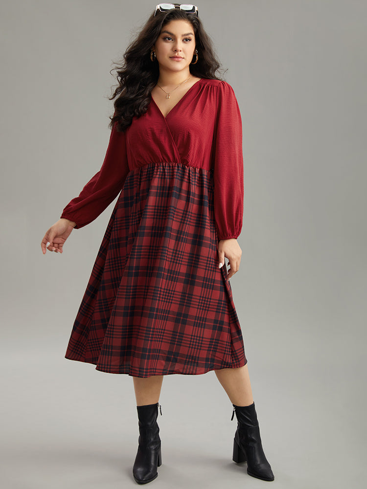 Shop Plaid Patchwork Gathered Lantern Sleeve Dress now and redefine your style with confidence at Sweetccc. Tailored for mid and plus-size women. This trendy Dress. sizes 10-30. You can never go wrong with Sweetccc Dresses. Season:Winter;Color:Raspberry;Style:Casual;Neckline:V-neck;Sleeve Type:Lantern Sleeve;Pattern Type:Plaid;Details:Pocket. Button. Elastic Waist. Patchwork. Pleated. Elastic cuffs;Pocket:It is perfectly sized to carry a phone.;Belt:No-belt