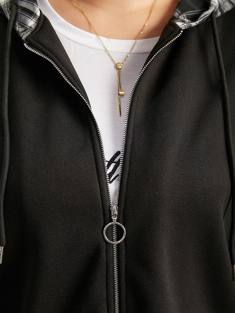 Shop Plaid Patchwork O Ring Zipper Hooded Drawstring Jacket now and redefine your style with confidence at Sweetccc. Tailored for mid and plus-size women. This trendy Outerwear Women. sizes 10-30. Season:Winter;Color:Black;Style:Casual;Pattern Type:Plaid;Details:Drawstring. Patchwork. Zipper. Contrast;Pocket:No-pocket;Belt:No-belt;Closure Type:Zipper;Lining:No-lining