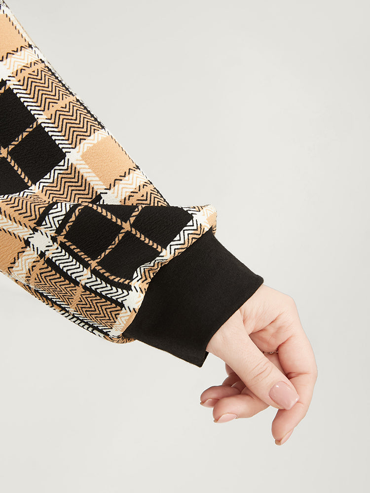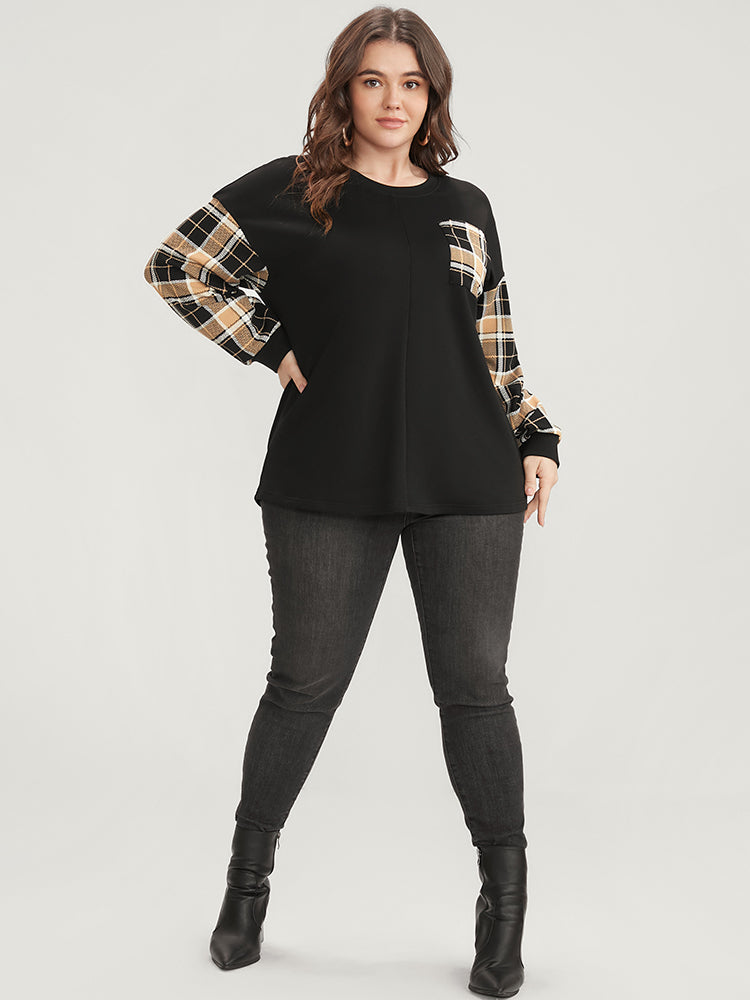 Shop Plaid Patchwork Pocket Round Neck Sweatshirt now and redefine your style with confidence at Sweetccc. Tailored for mid and plus-size women. This trendy Tops Women. sizes 10-30. Season:Spring;Color:Black;Neckline:Round Neck;Sleeve Type:Regular Sleeve;Details:Patchwork;Pocket:It is perfectly sized to carry a phone.;Belt:No-belt