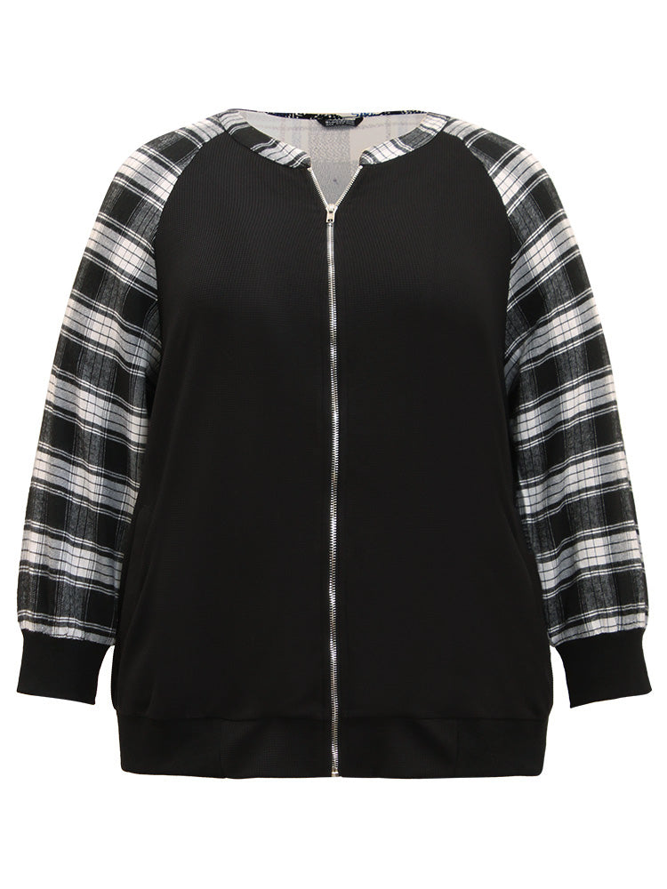 Shop Plaid Patchwork Pocket Zipper Fly Jacket now and redefine your style with confidence at Sweetccc. Tailored for mid and plus-size women. This trendy Outerwear Women. sizes 10-30. Season:Fall;Color:Black;Style:Casual;Pattern Type:Plaid;Details:Patchwork. Contrast. Elastic cuffs. Zipper. Pocket;Pocket:It is perfectly sized to carry a phone.;Belt:No-belt;Closure Type:Zipper;Lining:No-lining