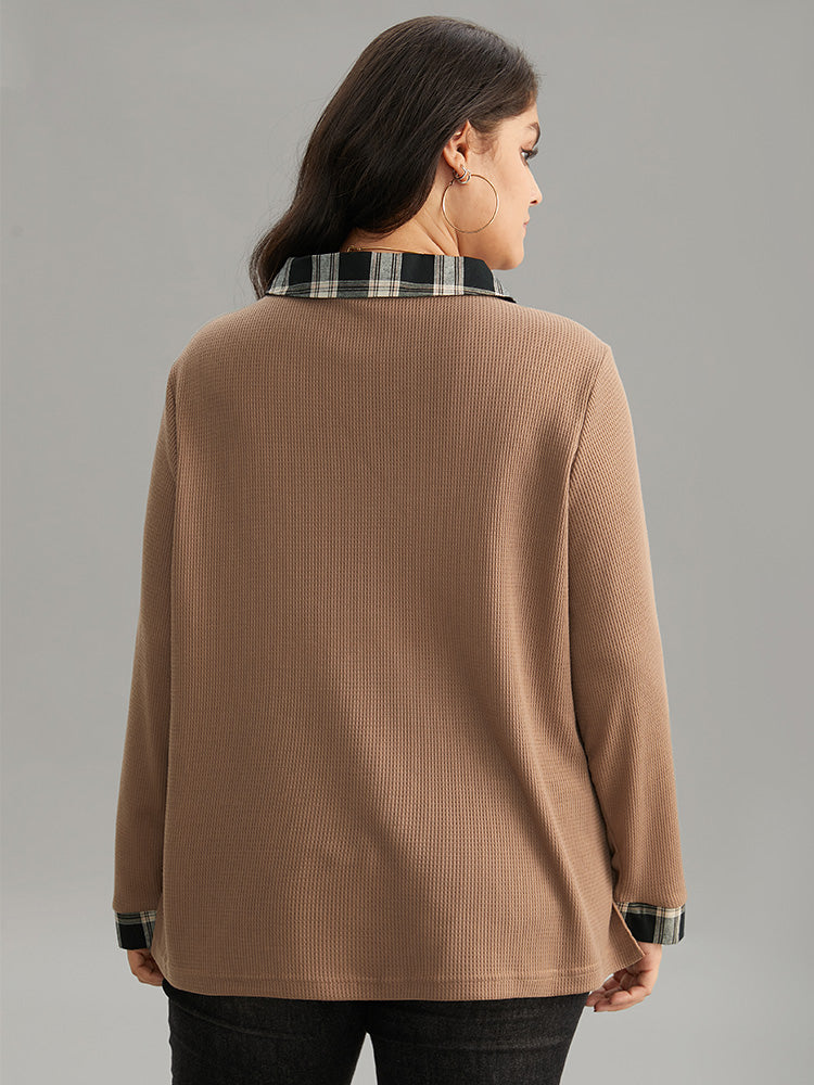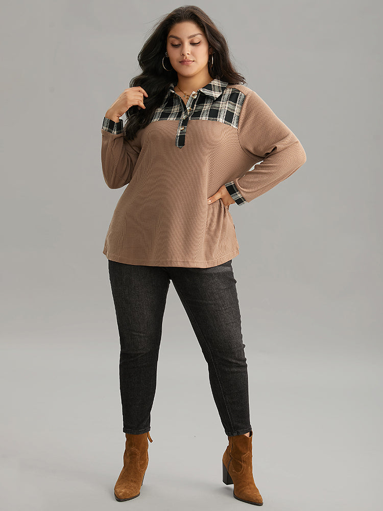 Shop Plaid Patchwork Polo Waffle Knit Button Up T-shirt now and redefine your style with confidence at Sweetccc. Tailored for mid and plus-size women. This trendy Tops Women. sizes 10-30. Season:Winter;Color:LightBrown;Style:Casual;Pattern Type:Plaid;Neckline:Polo;Sleeve Type:Regular Sleeve;Details:Button. Patchwork. Waffle Knit;Pocket:No-pocket
