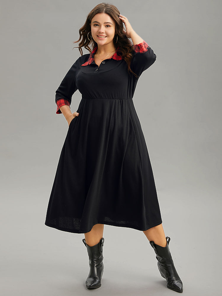 Shop Plaid Patchwork Shirt Collar Button Up Dress now and redefine your style with confidence at Sweetccc. Tailored for mid and plus-size women. This trendy Dress. sizes 10-30. You can never go wrong with Sweetccc Dresses. Season:Winter;Color:Black;Style:Casual;Neckline:Shirt collar;Sleeve Type:Regular Sleeve;Pattern Type:Plaid. Graphic-Christmas;Details:Pocket. Button. Elastic Waist. Patchwork. Printed;Pocket:It is perfectly sized to carry a phone.;Belt:No-belt