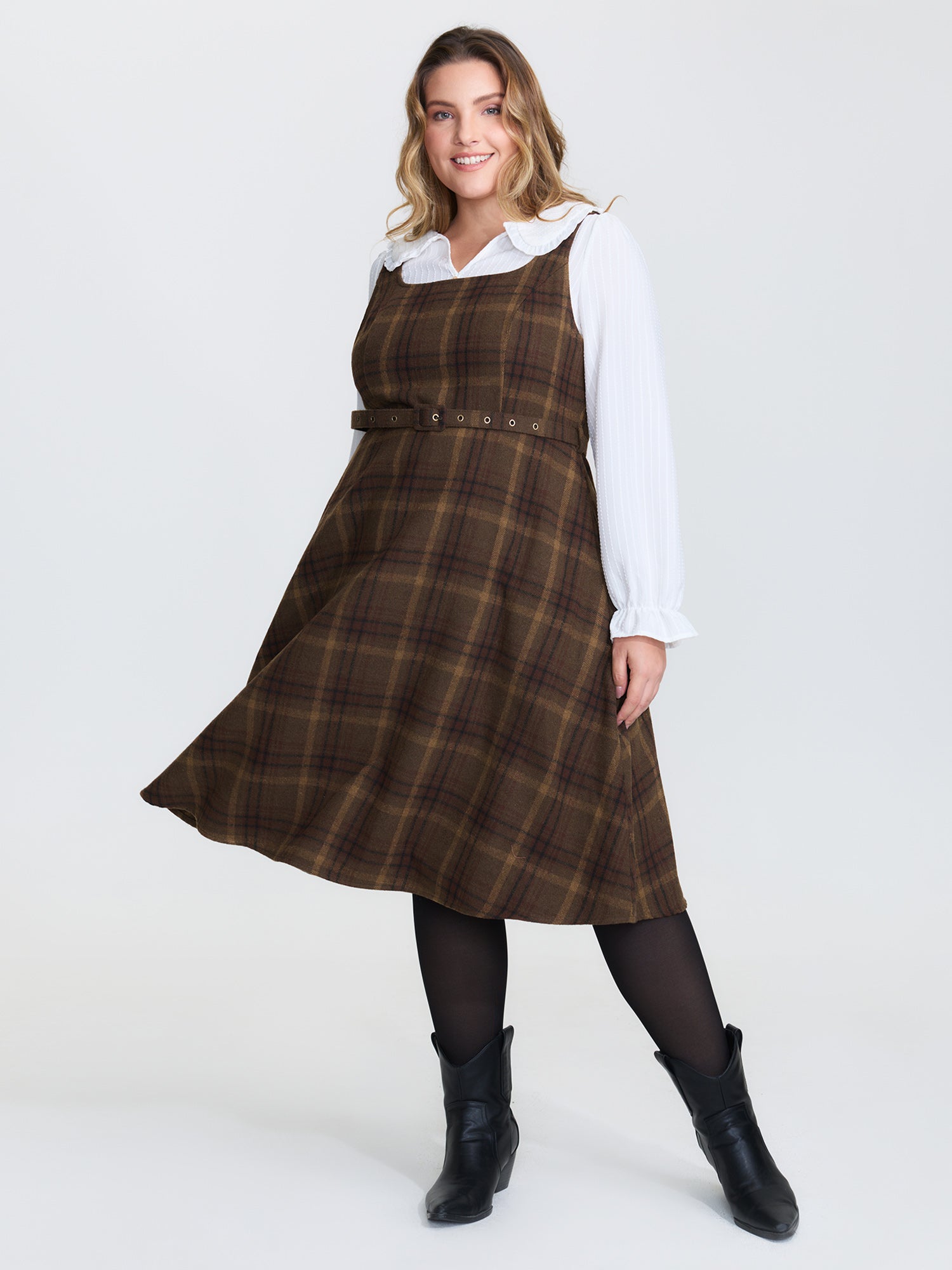 Shop Plaid Pattern Adjustable Belt Midi Dress now and redefine your style with confidence at Sweetccc. Tailored for mid and plus-size women. This trendy Dress. sizes 10-30. You can never go wrong with Sweetccc Dresses. Color:DarkBrown;Style:Leisure;Neckline:U-neck;Sleeve Type:Sleeveless;Prints:Plaid;Details:Belted;Pocket:Side seam pocket;Belt:Belt;Closure Type:Non