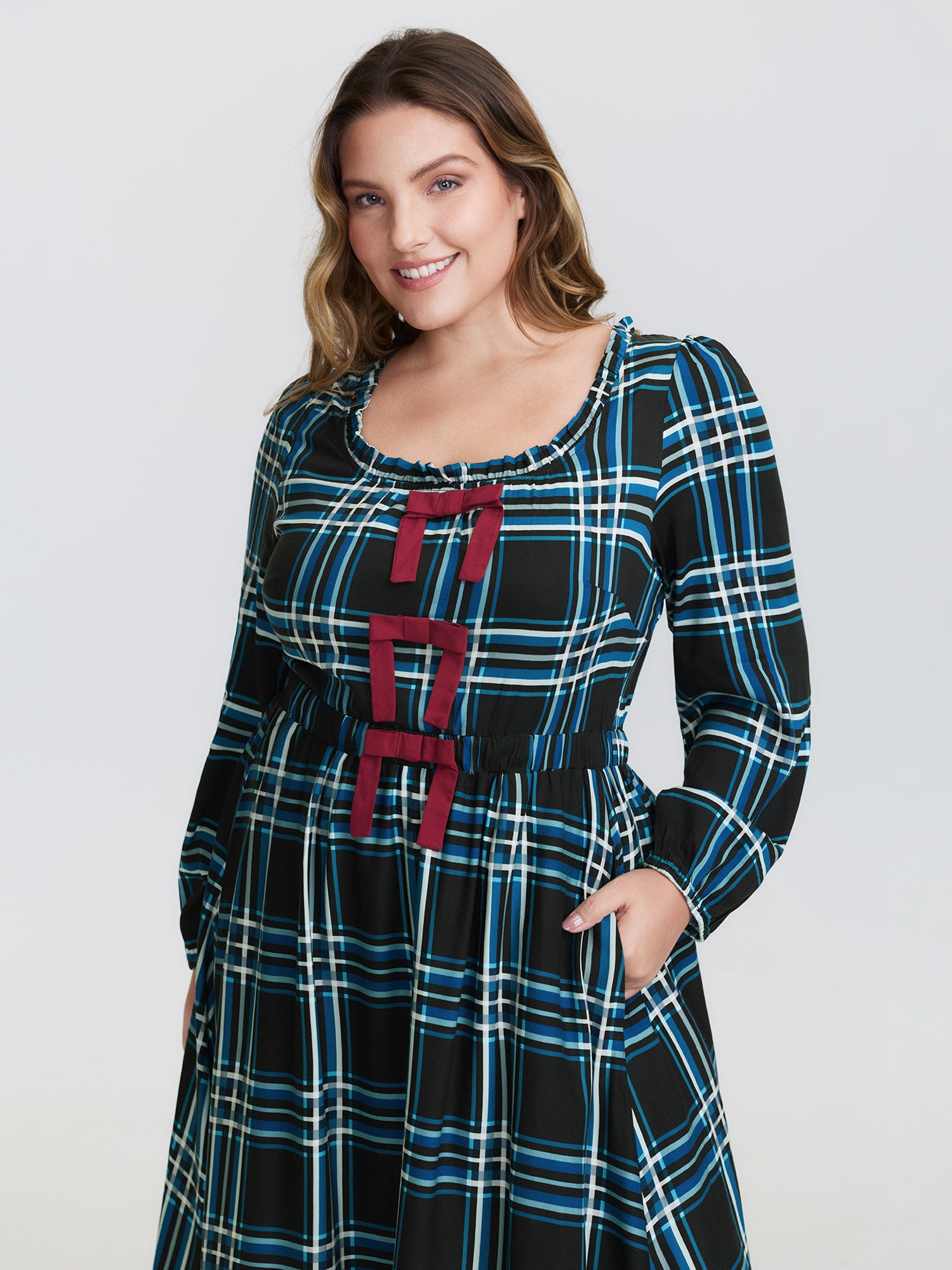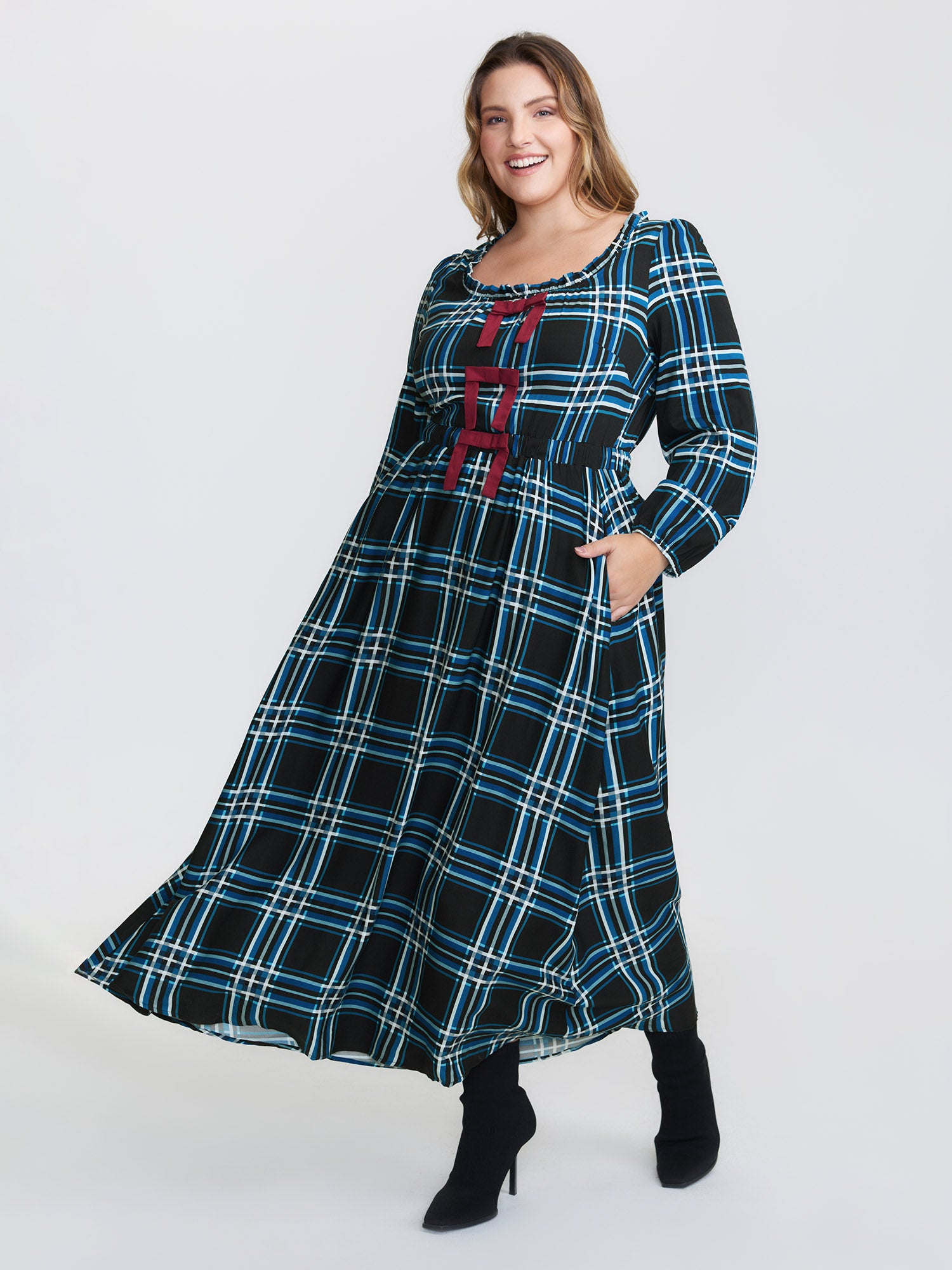 Shop Plaid Pattern Bowknot Pockets Maxi Dress now and redefine your style with confidence at Sweetccc. Tailored for mid and plus-size women. This trendy Dress. sizes 10-30. You can never go wrong with Sweetccc Dresses. Color:DarkGreen;Style:Leisure;Neckline:U-neck;Sleeve Type:Puff Sleeve;Prints:Plaid;Details:Bowknot. Tie knot. Contrast;Pocket:Side seam pocket;Belt:No-belt;Closure Type:Non