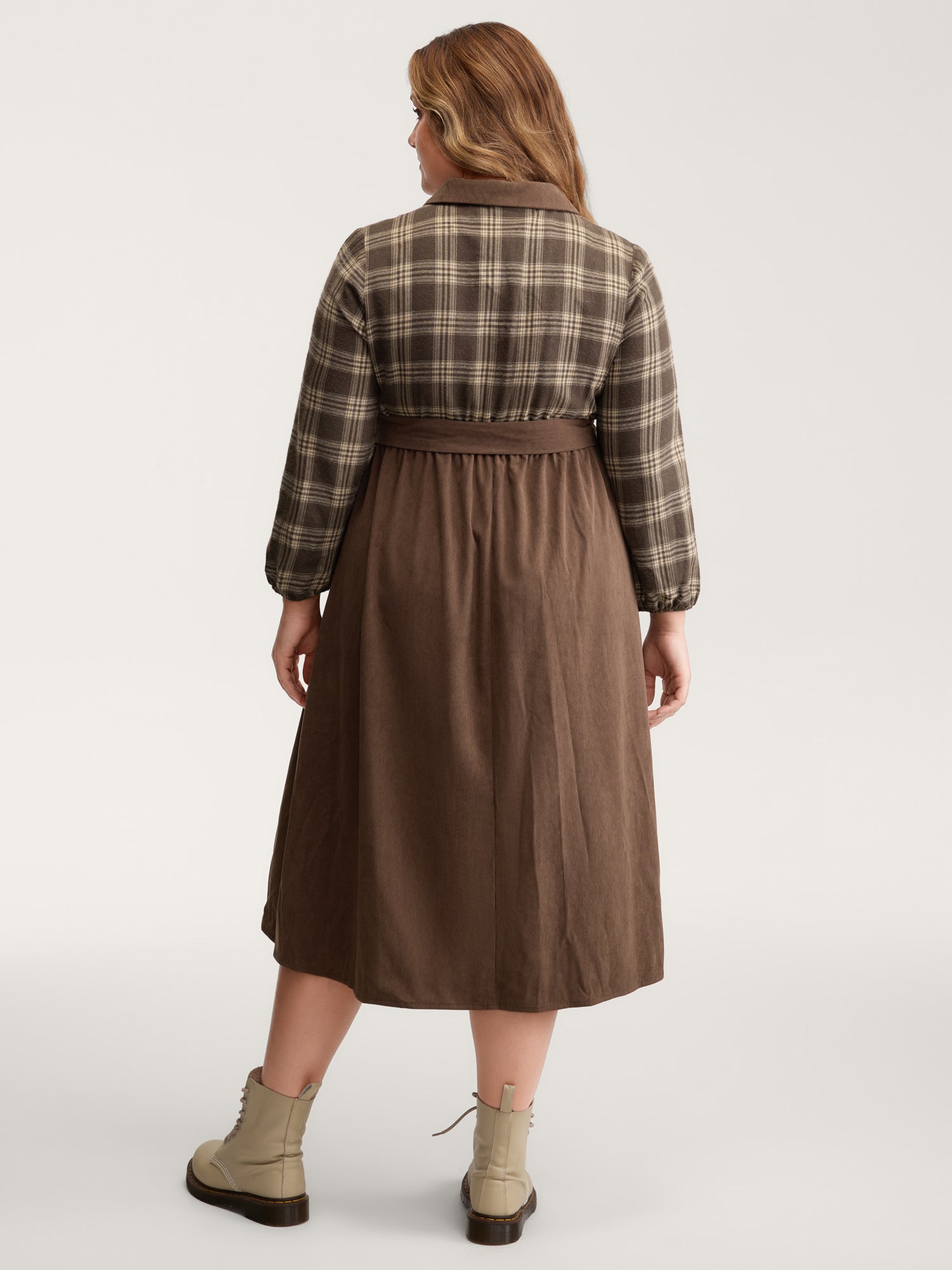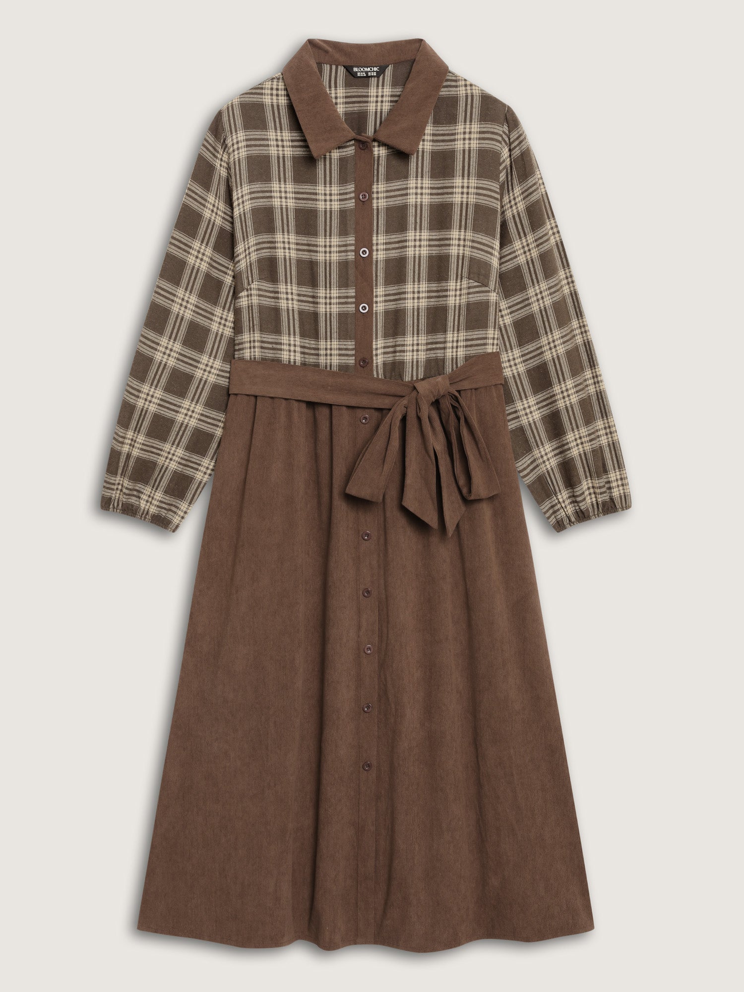Shop Plaid Pattern Contrast Waist-Tie Midi Dress now and redefine your style with confidence at Sweetccc. Tailored for mid and plus-size women. This trendy Dress. sizes 10-30. You can never go wrong with Sweetccc Dresses. Color:Yellowishbrown;Neckline:Shirt collar;Sleeve Type:Lantern Sleeve;Prints:Plaid;Details:Button. Contrast. Belted. Texture;Pocket:Side seam pocket;Belt:Belt;Closure Type:Non