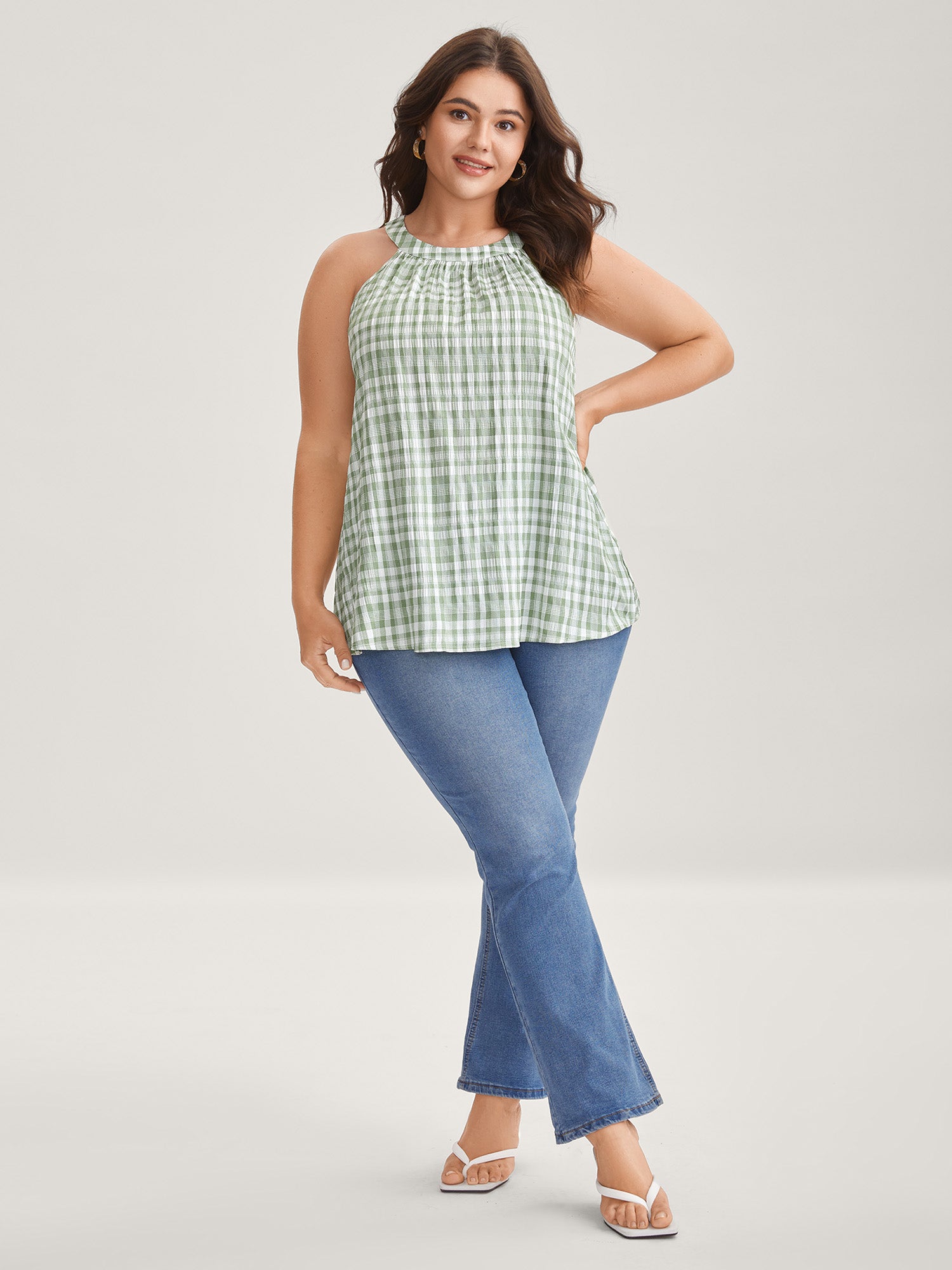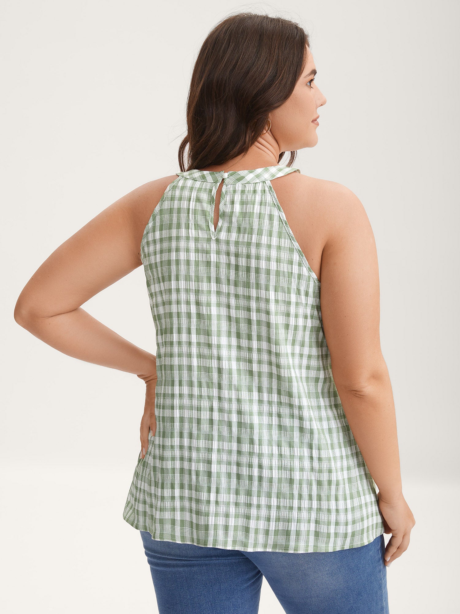Shop Plaid Pattern Halter Neck Tank Top now and redefine your style with confidence at Sweetccc. Tailored for mid and plus-size women. This trendy Tops Women. sizes 10-30. Color:Mint;Prints:Plaid;Neckline:Halter neck;Sleeve Type:Sleeveless;Details:Button. Gathered;Pocket:No-pocket