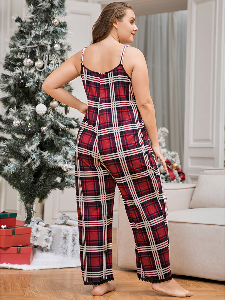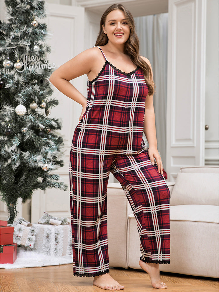 Shop Plaid Pocket Lace Trim Cami Jumpsuit now and redefine your style with confidence at Sweetccc. Tailored for mid and plus-size women. This trendy Loungewear Women. sizes 10-30. Season:Winter;Color:Multicolor;Neckline:V-neck;Sleeve Type:Sleeveless;Pattern Type:Plaid;Details:Lace. Pocket;Pocket:It is perfectly sized to carry a phone.;Belt:No-belt
