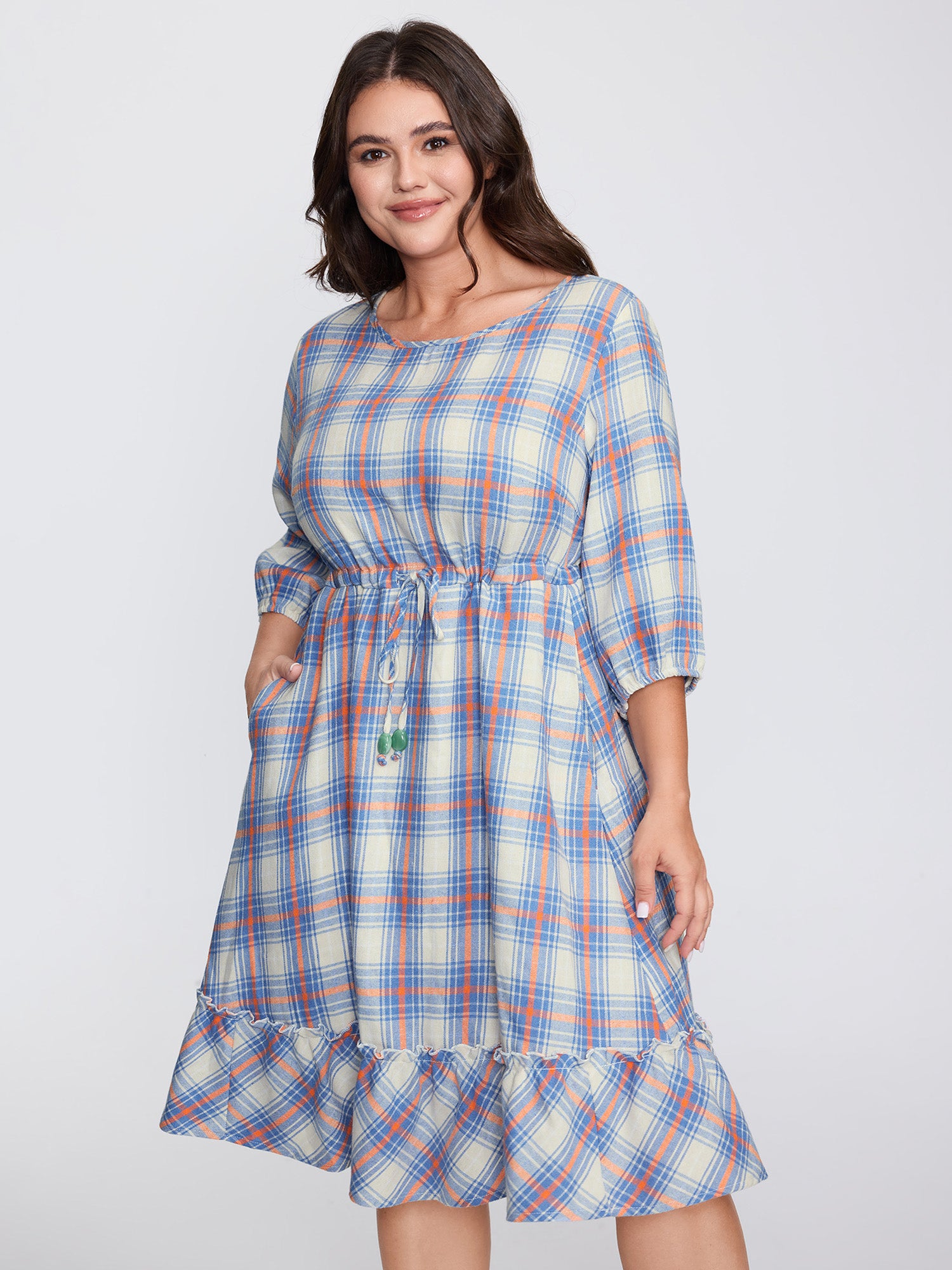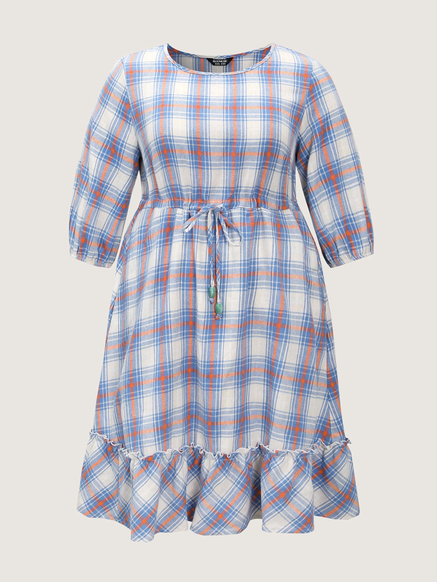 Shop Plaid Print Drawstring Waist Pockets Midi Dress now and redefine your style with confidence at Sweetccc. Tailored for mid and plus-size women. This trendy Dress. sizes 10-30. You can never go wrong with Sweetccc Dresses. Color:LightBlue;Style:Leisure;Neckline:Round Neck;Sleeve Type:Regular Sleeve;Prints:Plaid;Details:Drawstring;Pocket:Side seam pocket;Belt:No-belt;Closure Type:Non