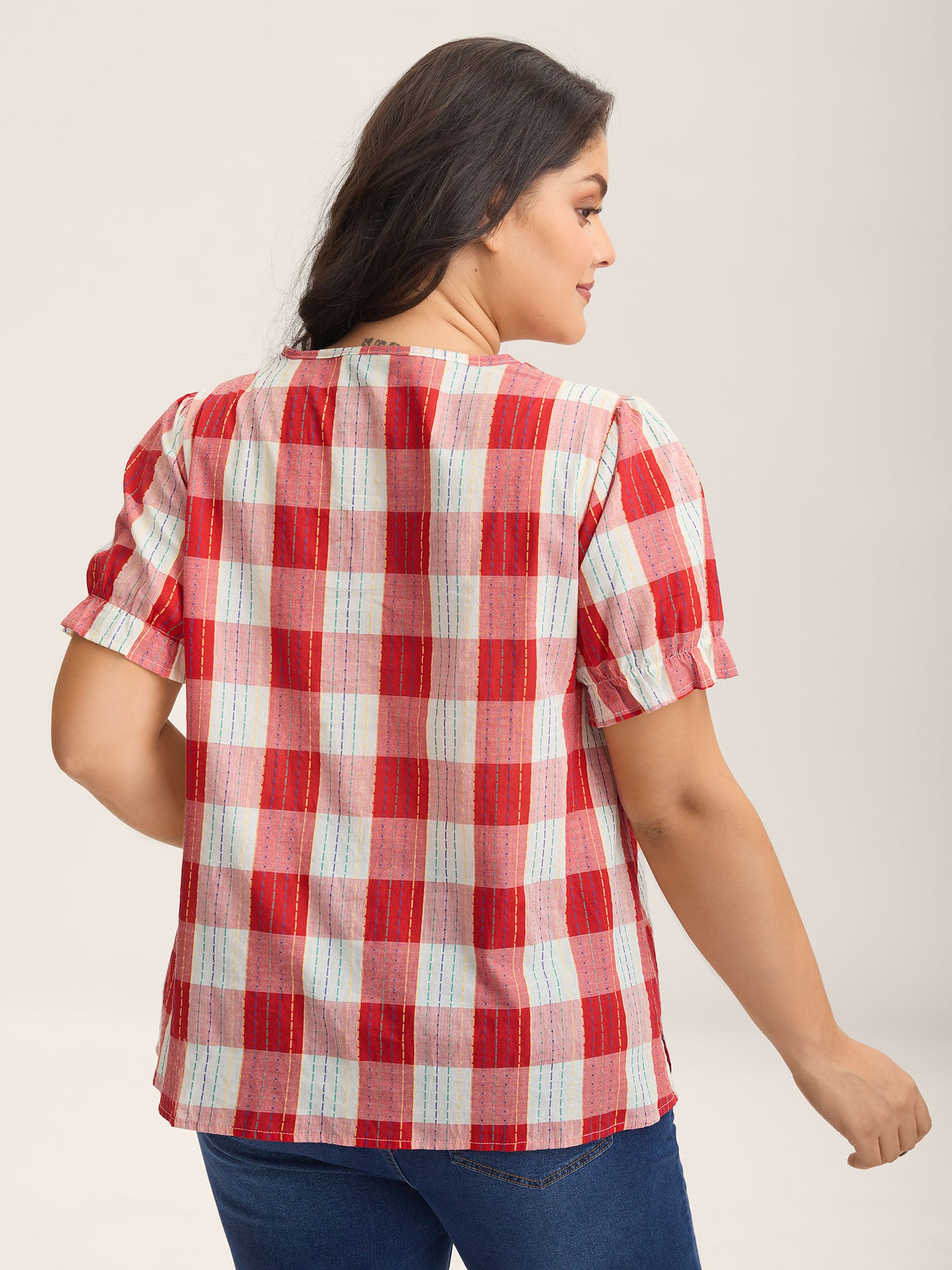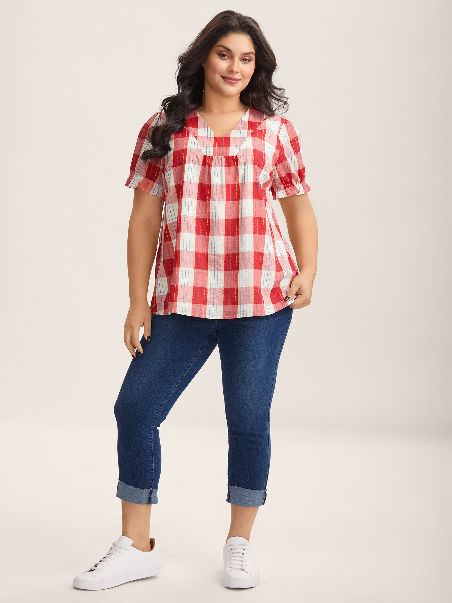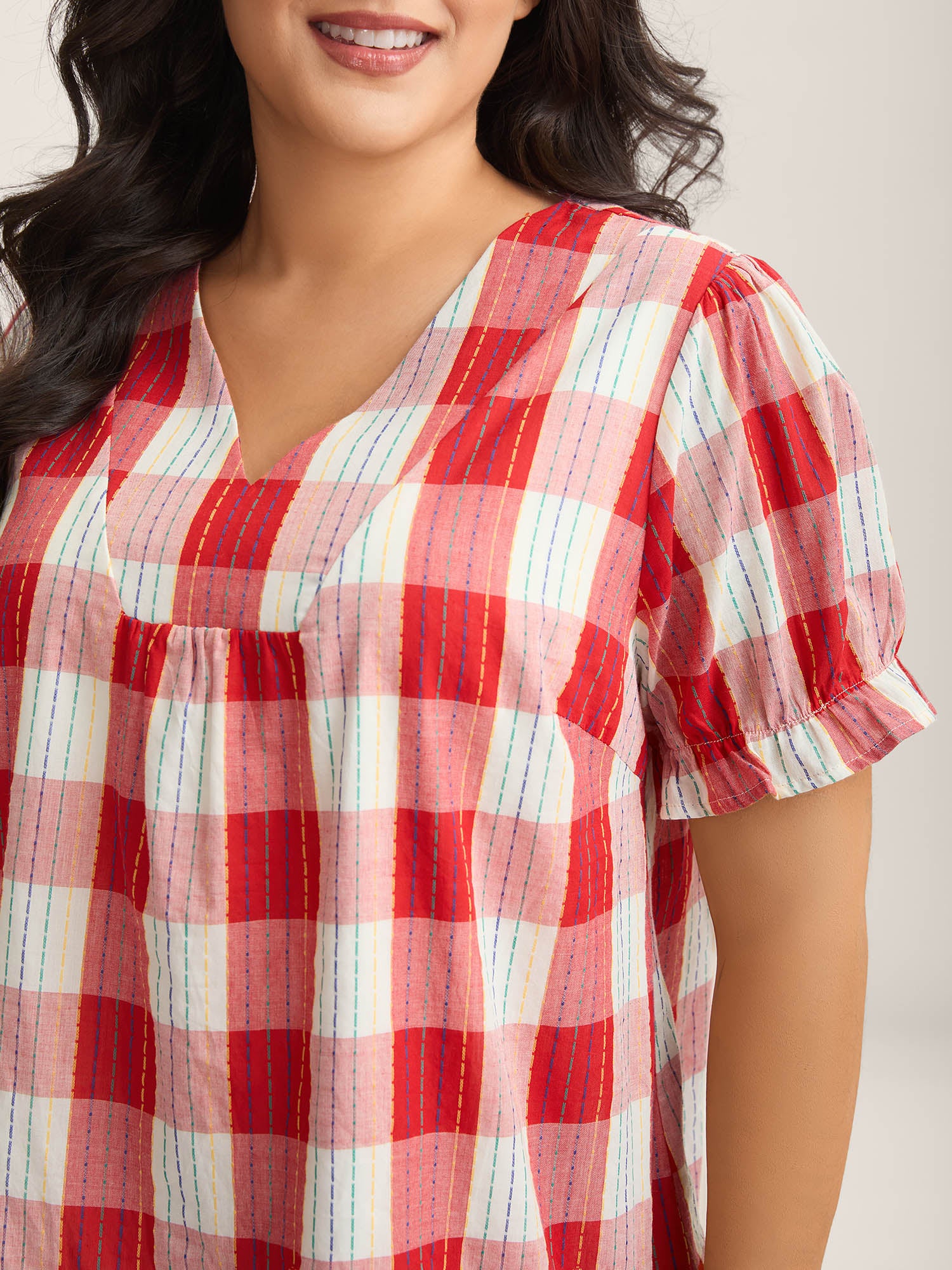 Shop Cotton Plaid Print V-Neck Puffy Sleeve Blouse at Sweetccc. Plus Size Clothing & Plus Size Blouses. Sweetccc is a digital-first fashion and lifestyle destination for modern women sizes 10-30.