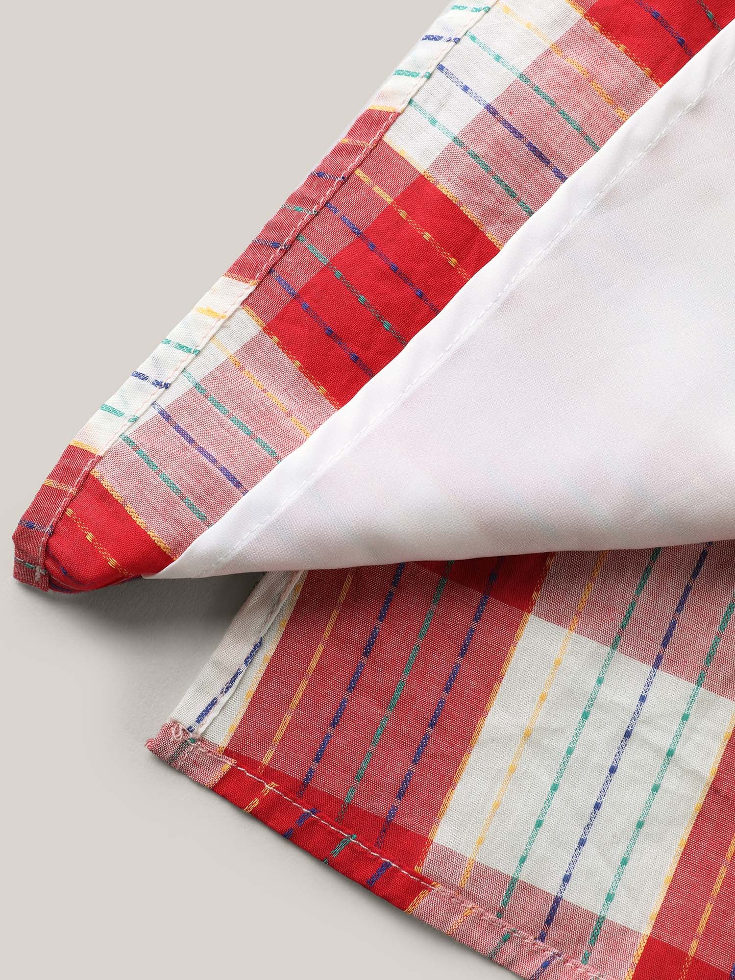 Cotton Plaid Print V-Neck Puffy Sleeve Blouse
