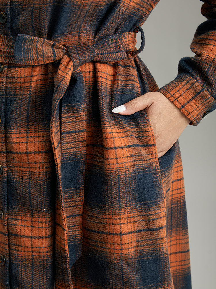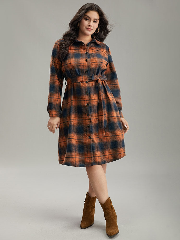 Shop Plaid Shirt Collar Belted Button Through Dress now and redefine your style with confidence at Sweetccc. Tailored for mid and plus-size women. This trendy Dress. sizes 10-30. You can never go wrong with Sweetccc Dresses. Season:Winter;Color:Rust;Style:Casual;Neckline:Shirt collar;Sleeve Type:Regular Sleeve;Pattern Type:Plaid;Details:Pocket. Button. Printed. Belted;Pocket:It is perfectly sized to carry a phone.;Belt:Belt
