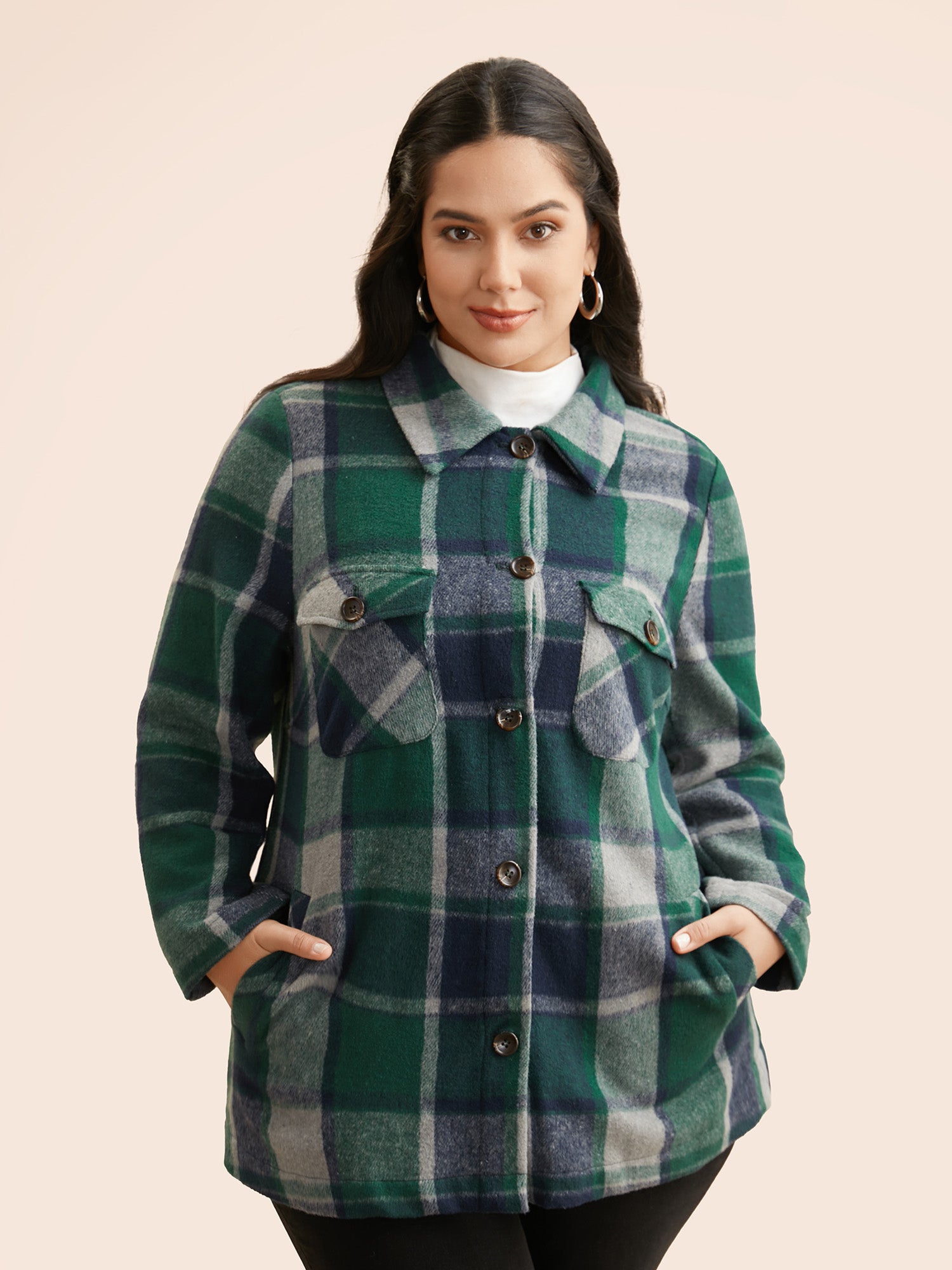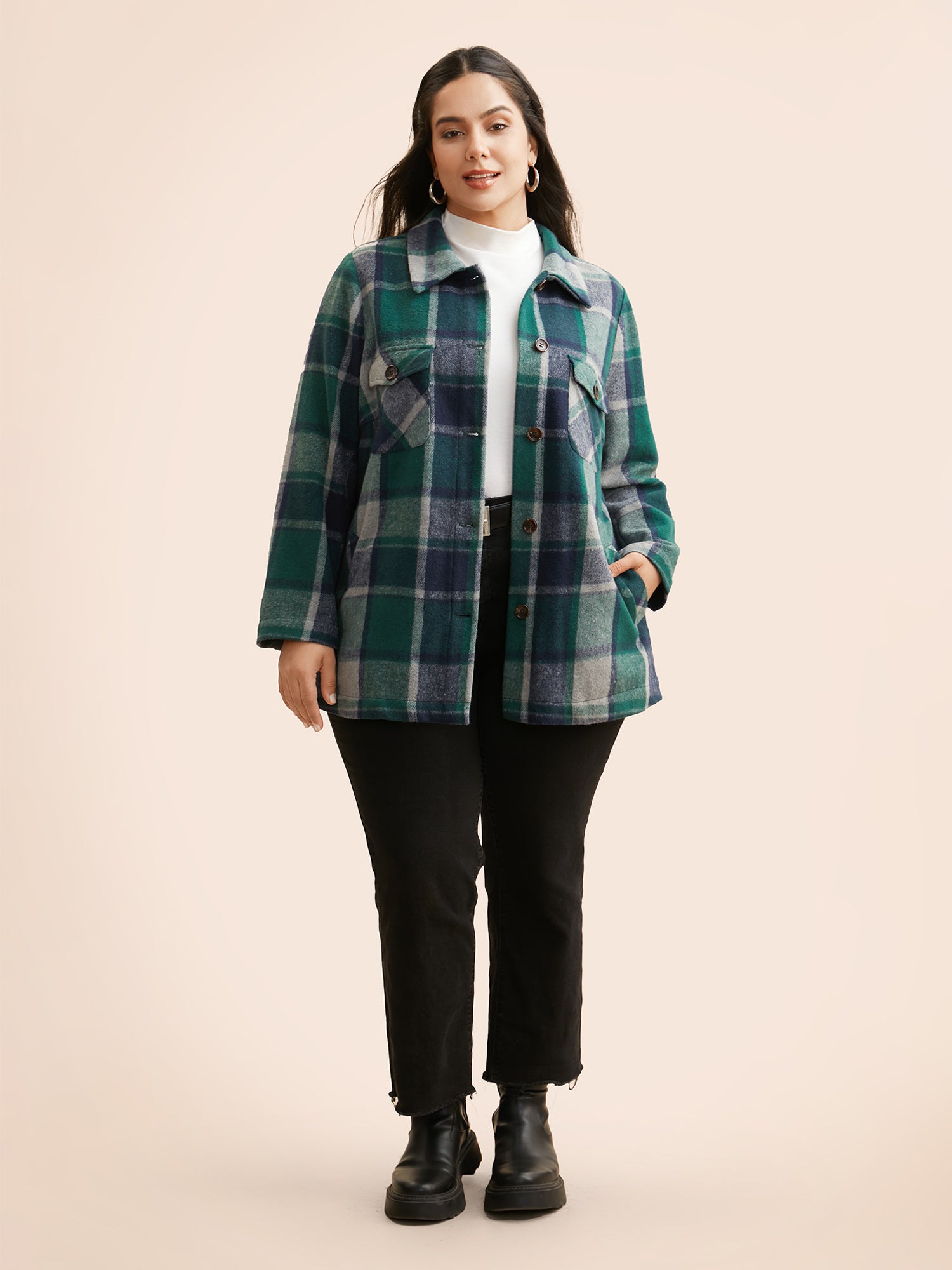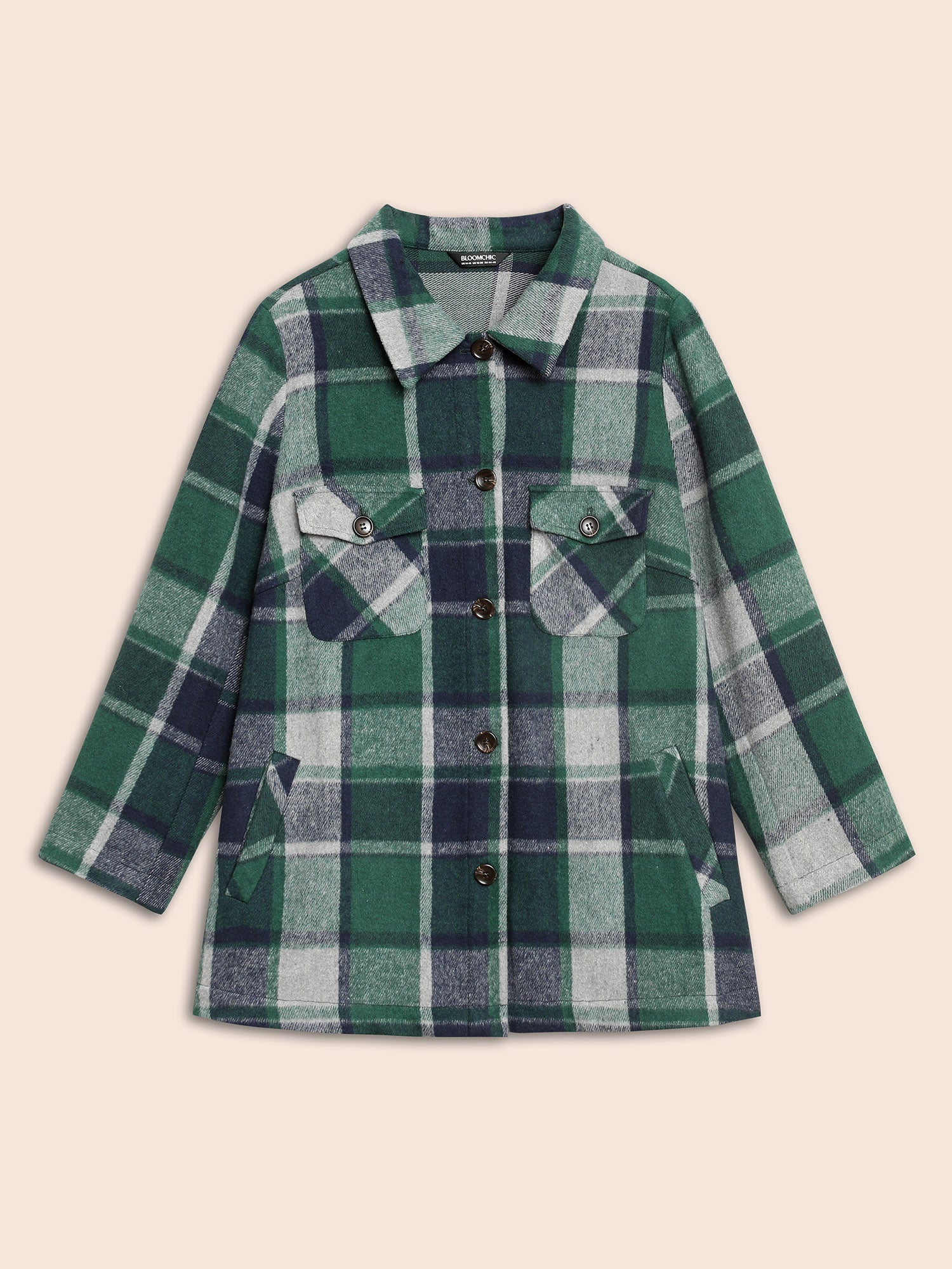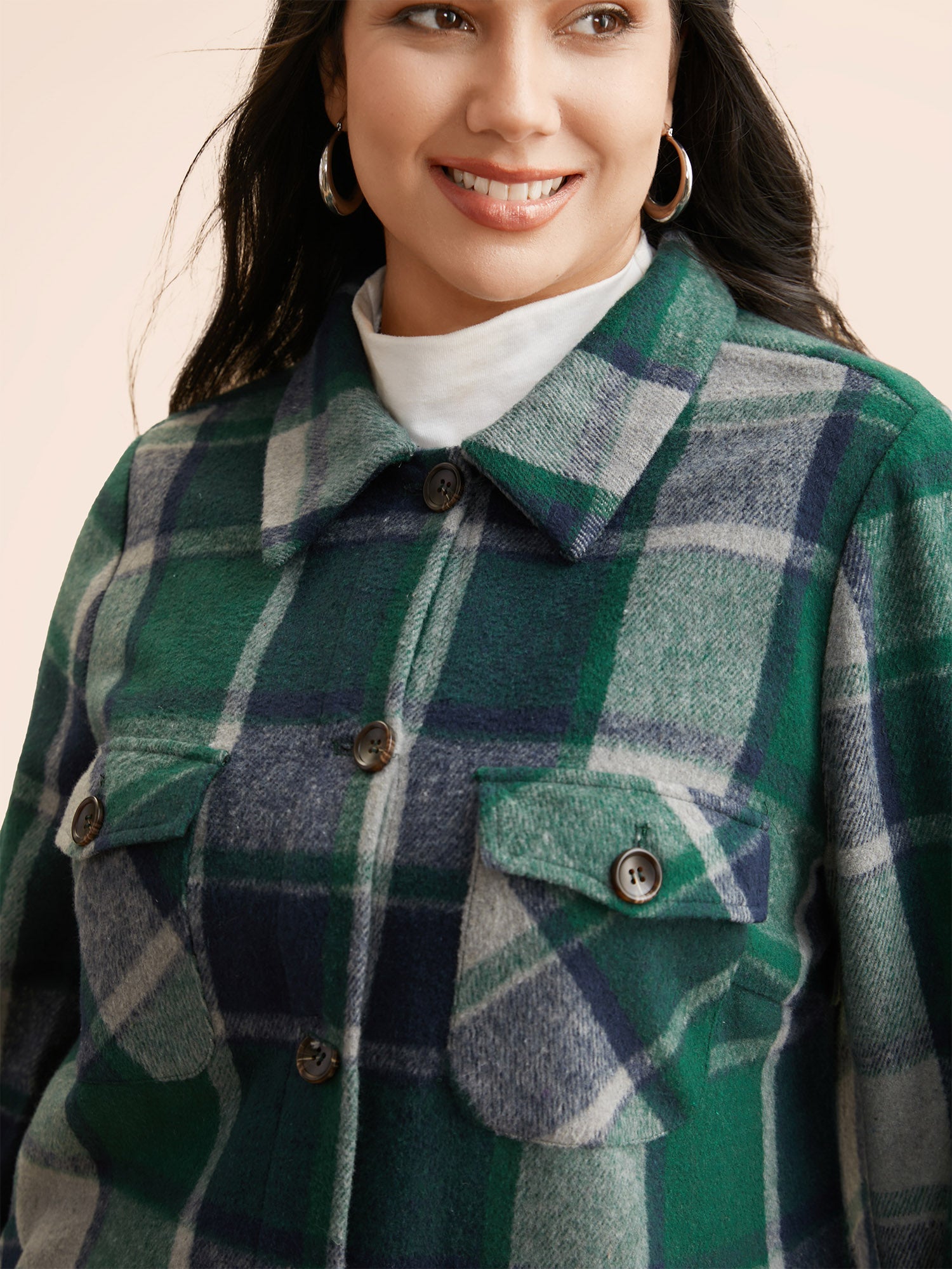 Shop Plaid Shirt Collar Patched Pocket Jacket now and redefine your style with confidence at Sweetccc. Tailored for mid and plus-size women. This trendy Outerwear Women. sizes 10-30. Season:Winter;Color:DarkGreen;Style:Elegant;Prints:Plaid;Details:Button;Pocket:Slanted pocket;Belt:No-belt;Closure Type:Open front with closure;Lining:No-lining
