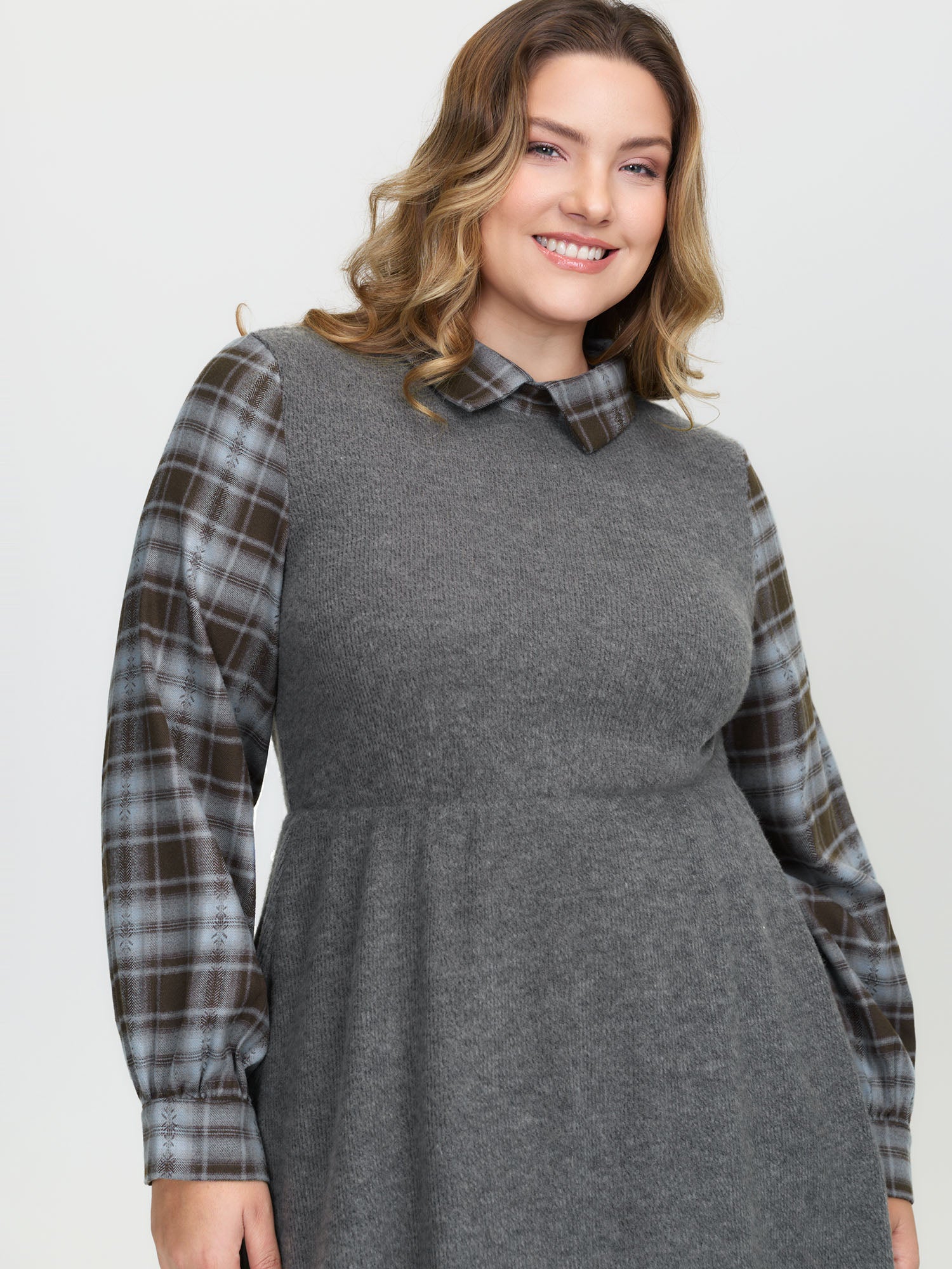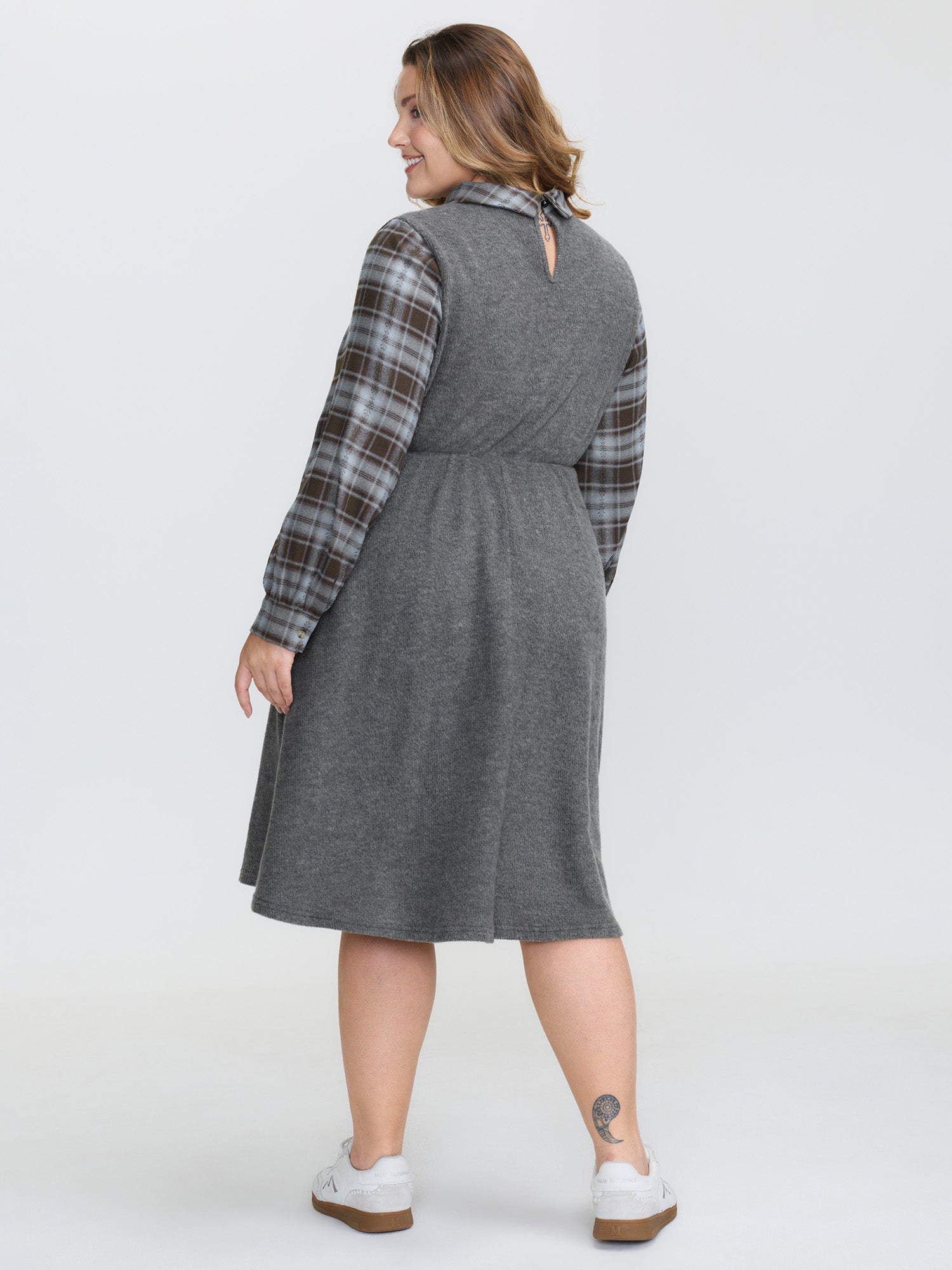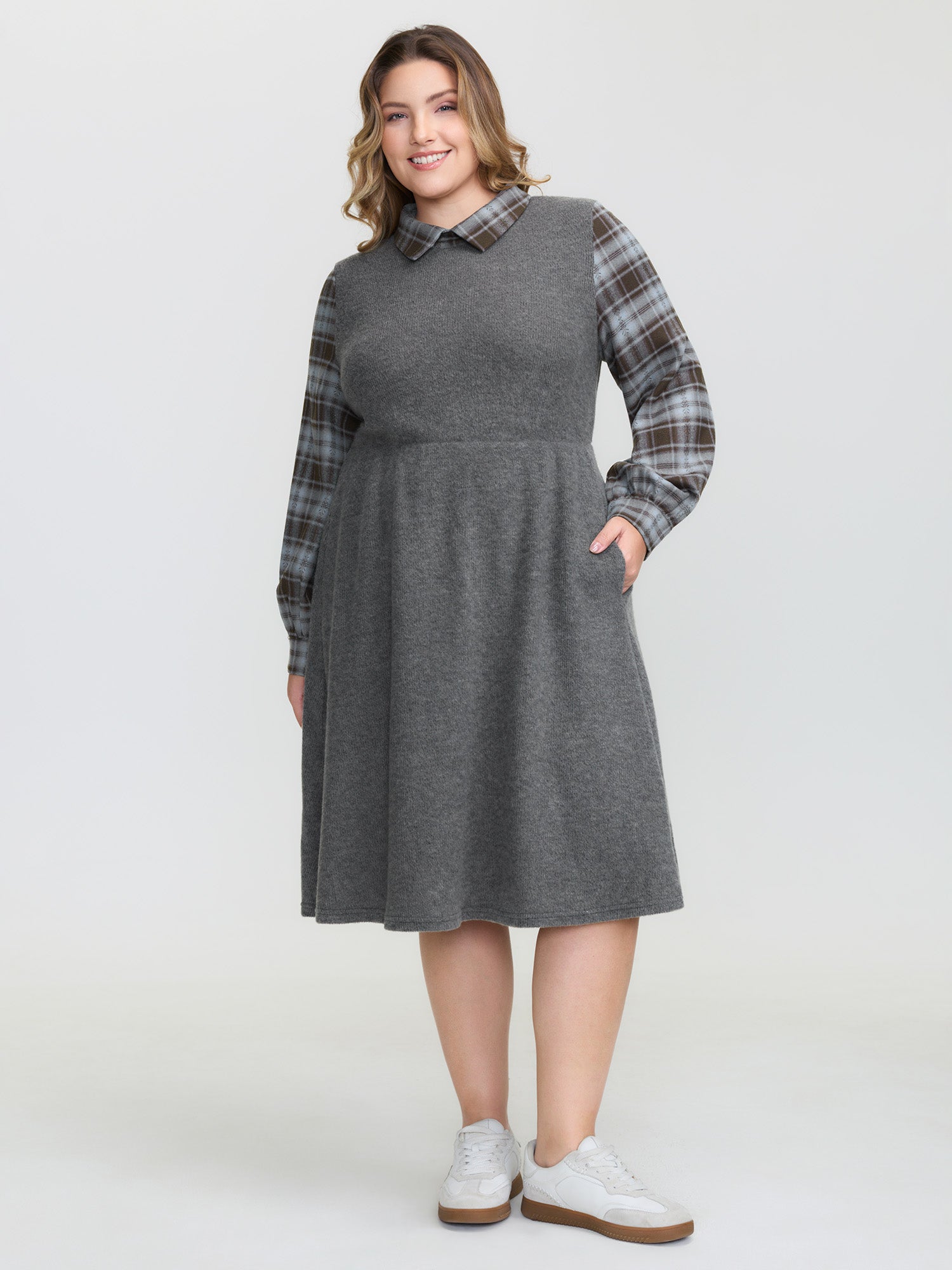 Shop Plaid Sleeve Ribbed Pockets Midi Dress now and redefine your style with confidence at Sweetccc. Tailored for mid and plus-size women. This trendy Dress. sizes 10-30. You can never go wrong with Sweetccc Dresses. Color:DimGray;Style:Leisure;Neckline:Shirt collar;Sleeve Type:Regular Sleeve;Prints:Plaid;Details:Gathered. Contrast. Texture;Pocket:Side seam pocket;Belt:No-belt;Closure Type:Non