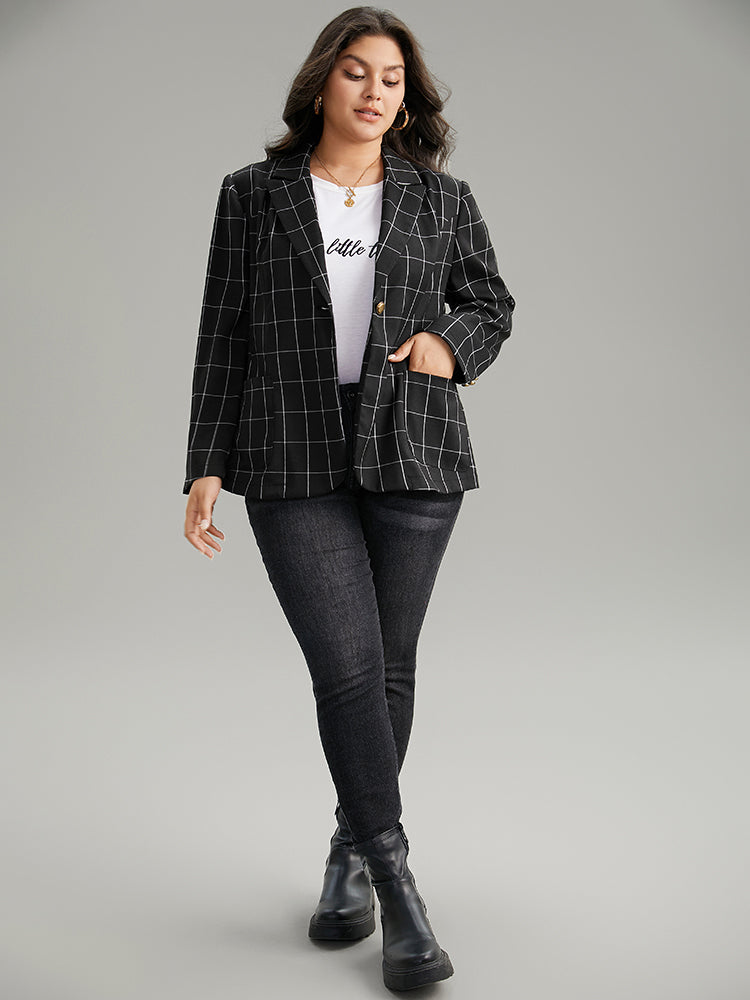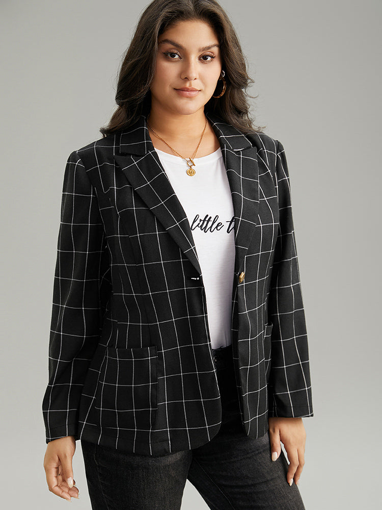 Shop Plaid Suit Collar Metal Detail Pocket Blazer now and redefine your style with confidence at Sweetccc. Tailored for mid and plus-size women. This trendy Outerwear Women. sizes 10-30. Season:Winter;Color:Black;Neckline:Suit Collar;Sleeve Type:Regular Sleeve;Pattern Type:Plaid;Details:Pocket. Button. Contrast;Pocket:It is perfectly sized to carry a phone.;Belt:No-belt;Closure Type:Button;Lining:No-lining