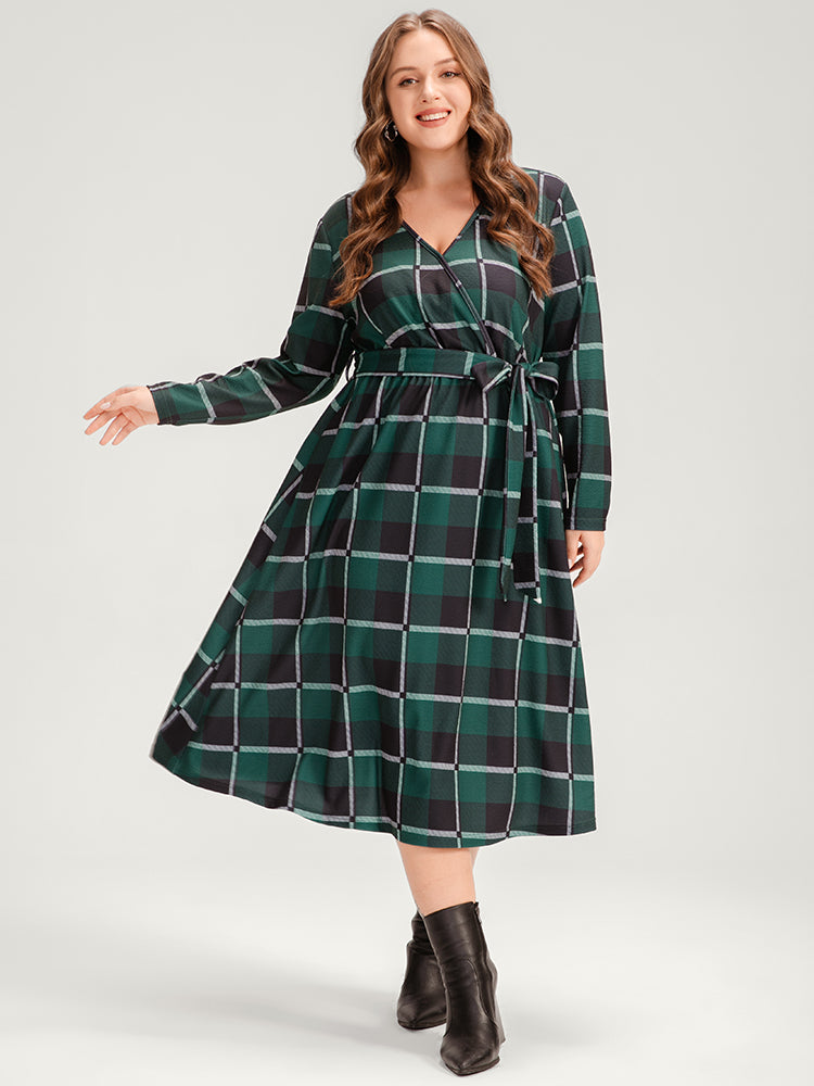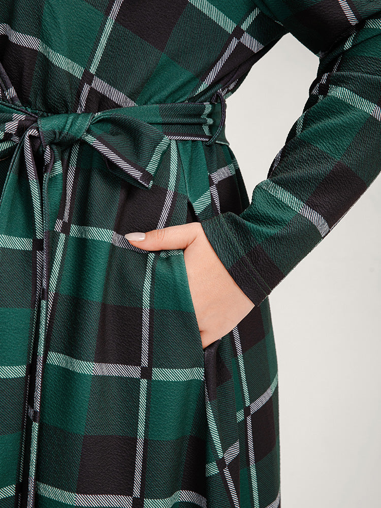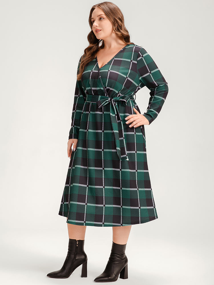 Shop Plaid Surplice Neck Pocket Belted Midi Dress now and redefine your style with confidence at Sweetccc. Tailored for mid and plus-size women. This trendy Dress. sizes 10-30. You can never go wrong with Sweetccc Dresses. Season:Winter;Color:Green;Style:Casual;Neckline:V-neck;Sleeve Type:Regular Sleeve;Details:Pocket. Cross straps;Pocket:It is perfectly sized to carry a phone.;Belt:Belt