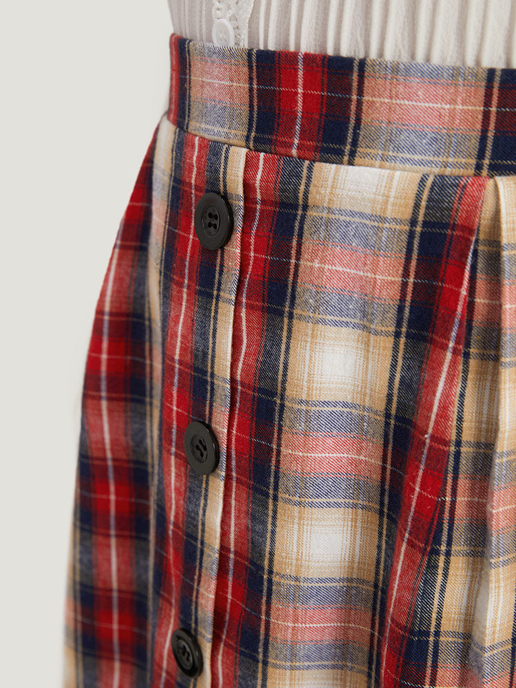 Shop Plaid Wideband Waist Pleated Button Detail Skirt now and redefine your style with confidence at Sweetccc. Tailored for mid and plus-size women. This trendy Bottoms Women. sizes 10-30. Season:Fall;Color:Raspberry;Style:Office;Pattern Type:Plaid;Details:Scalloped. Button. Pocket;Pocket:It is perfectly sized to carry a phone.;Snap Fastener:No-snap fastener;Belt:No-belt;Closure Type:Elastic Waist
