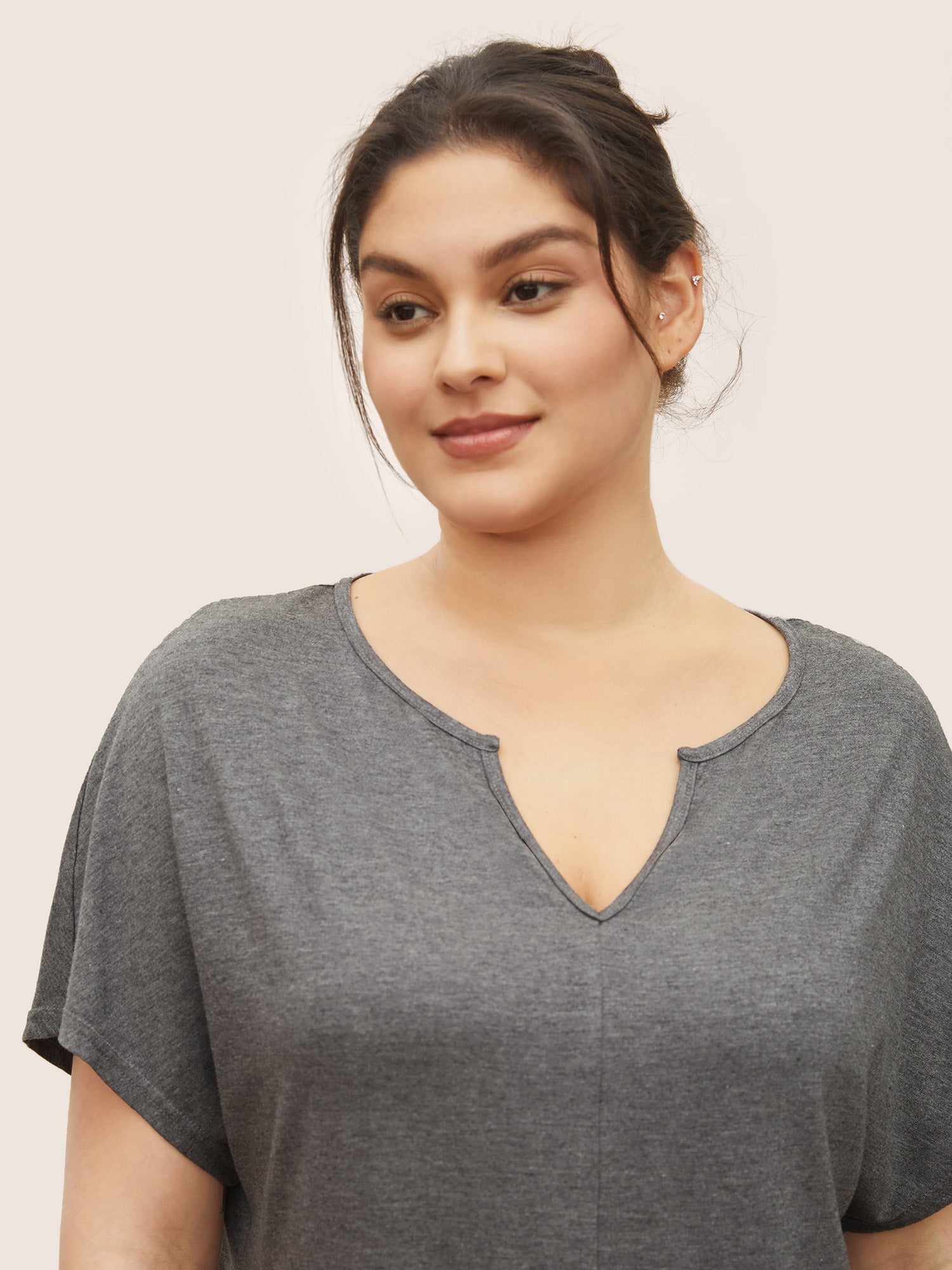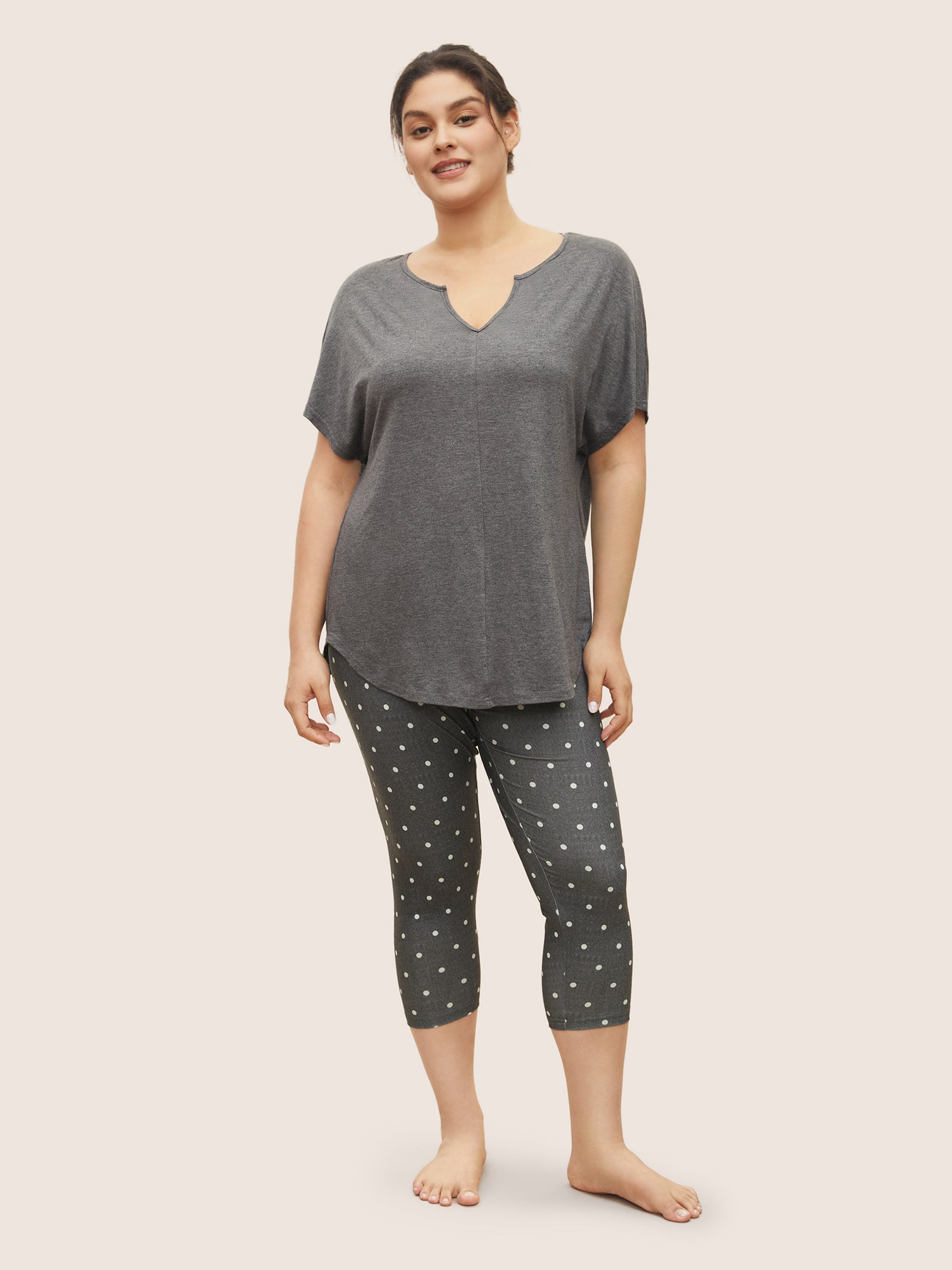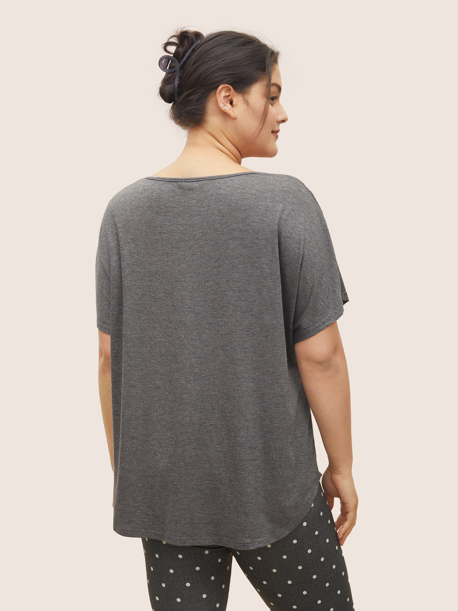 Shop Plain Arc Hem Notched Dolman Sleeve Sleep Top now and redefine your style with confidence at Sweetccc. Tailored for mid and plus-size women. This trendy Loungewear Women. sizes 10-30. Season:Summer;Color:DimGray;Neckline:Notched collar;Pattern Type:Plain;Pocket:No-pocket;Belt:No-belt