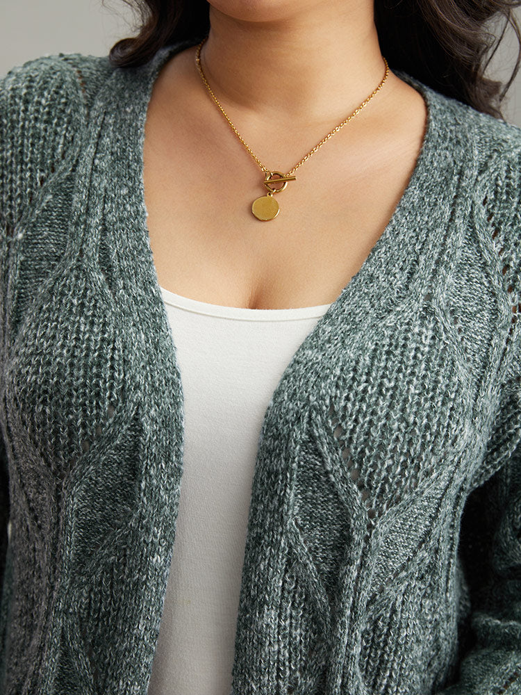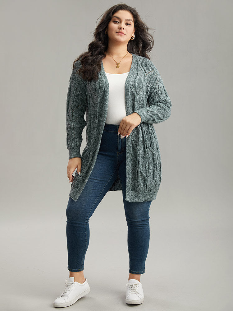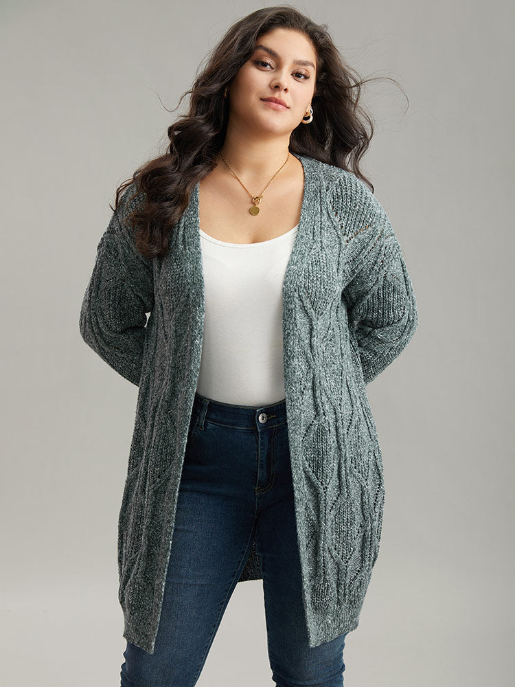 Shop Plain Cable Knit Drop Shoulder Cardigan now and redefine your style with confidence at Sweetccc. Tailored for mid and plus-size women. This trendy Sweaters Cardigans Women. sizes 10-30. Season:Winter;Color:DarkGreen;Style:Casual;Neckline:Open Front;Sleeve Type:Regular Sleeve;Pattern Type:Geometric. Plain;Details:Heather. Plain. Texture. Cable Knit. Elastic cuffs;Pocket:No-pocket;Belt:No-belt