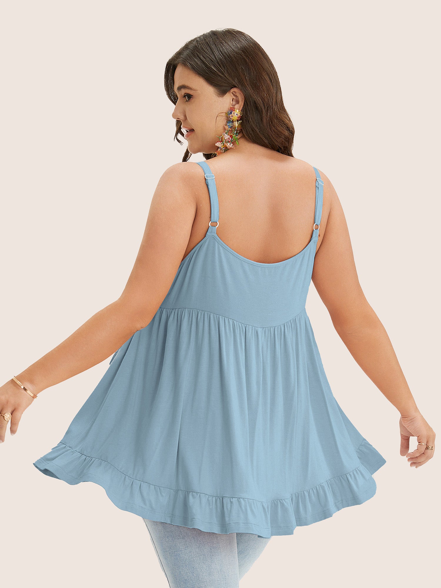 Shop Plain Contrast Lace Ruffle Hem Cami Top now and redefine your style with confidence at Sweetccc. Tailored for mid and plus-size women. This trendy Tops Women. sizes 10-30. Color:Stone;Pattern Type:Plain;Neckline:Non;Sleeve Type:Sleeveless;Pocket:No-pocket