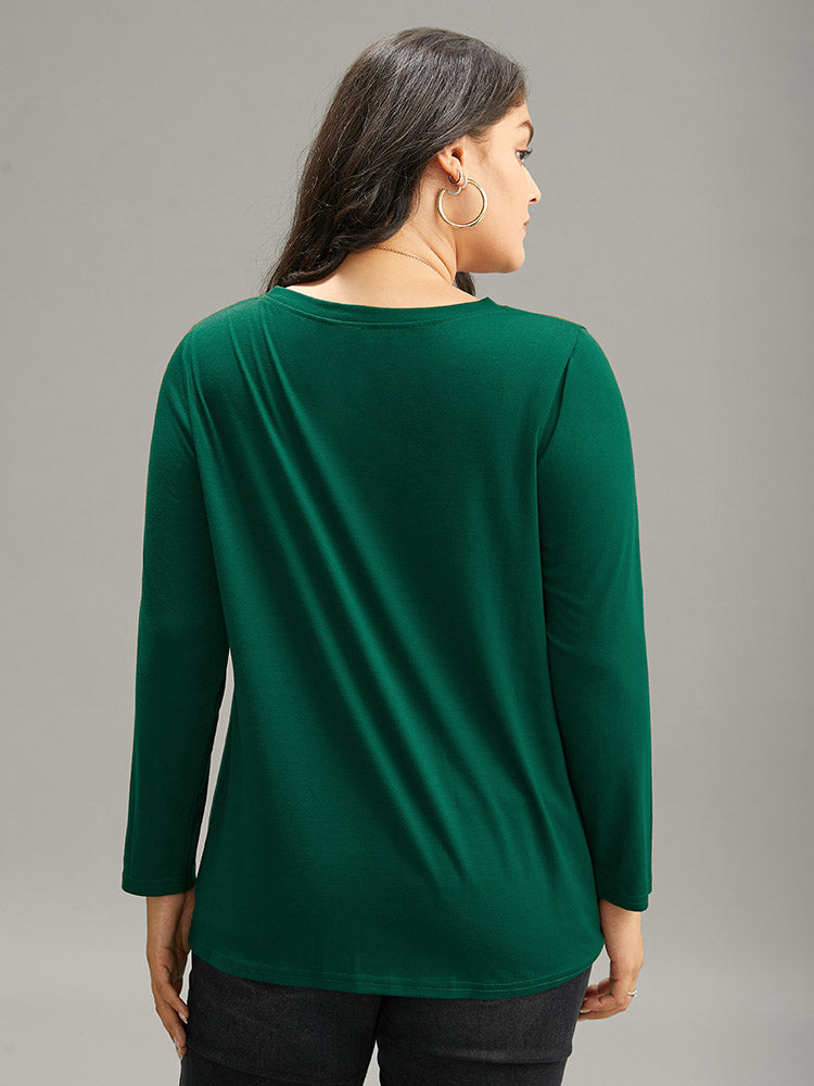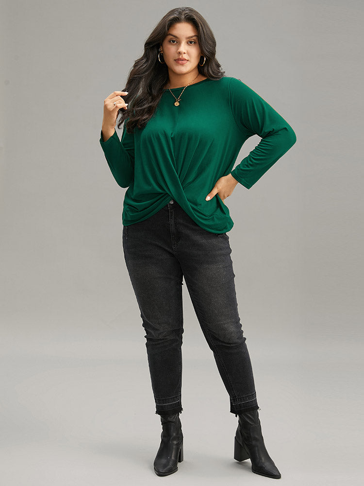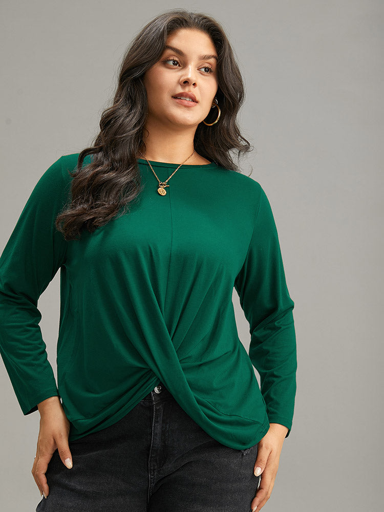 Shop Plain Crossover Gathered Crew Neck T-shirt now and redefine your style with confidence at Sweetccc. Tailored for mid and plus-size women. This trendy Tops Women. sizes 10-30. Season:Fall;Color:DarkGreen;Style:Elegant;Pattern Type:Plain;Neckline:Round Neck;Sleeve Type:Regular Sleeve;Details:Plain;Pocket:No-pocket