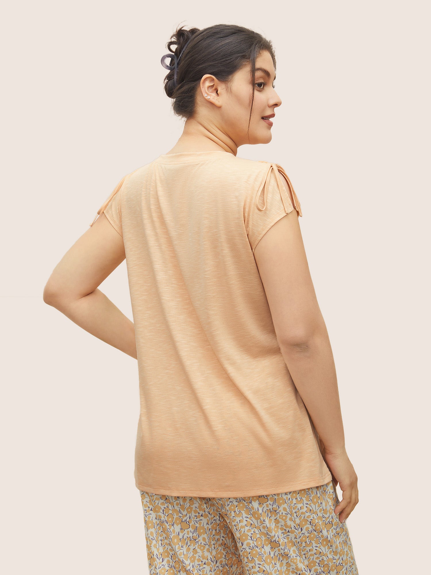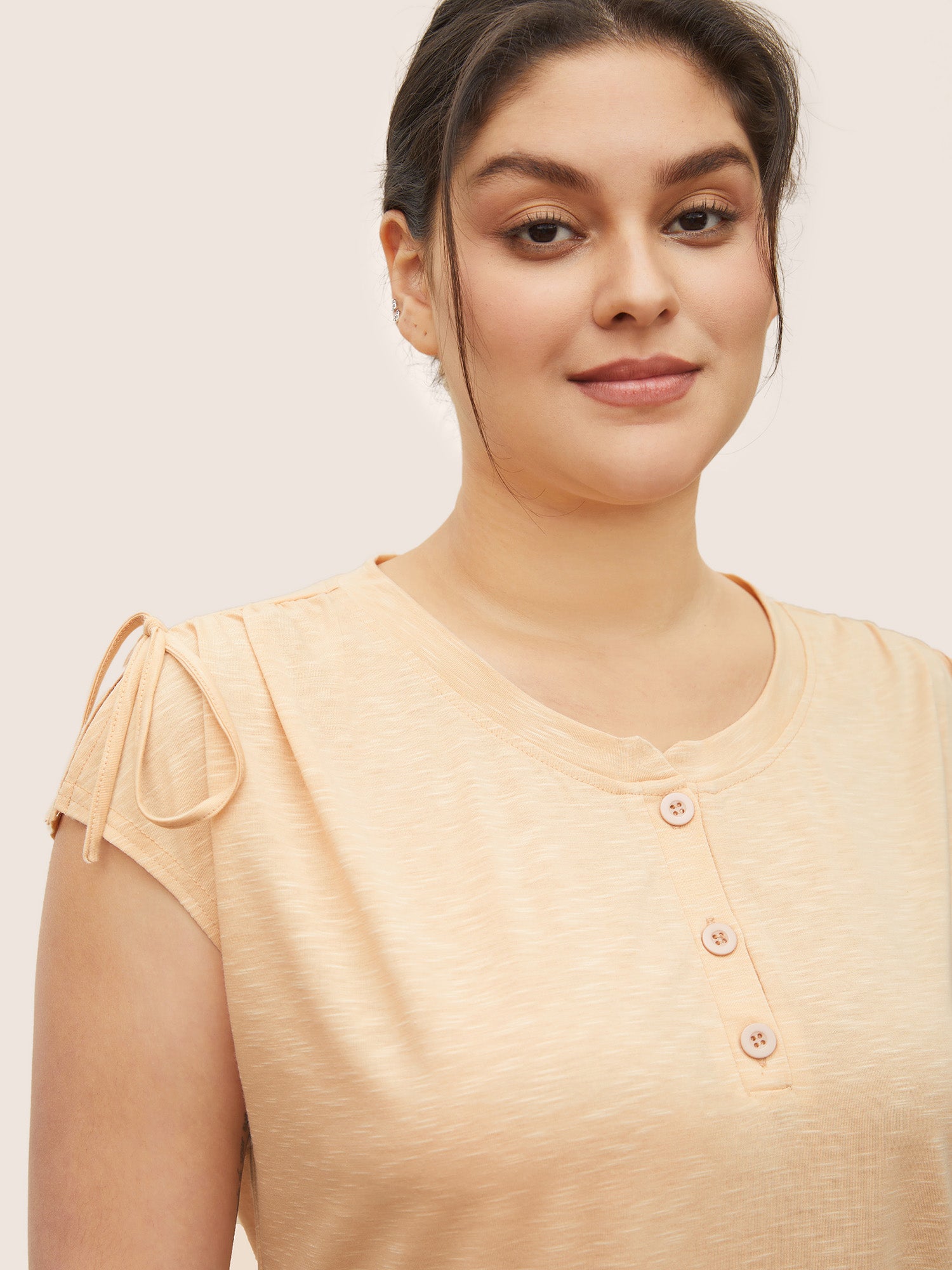 Shop Plain Drawstring Split Sleeve Button Up Sleep Top now and redefine your style with confidence at Sweetccc. Tailored for mid and plus-size women. This trendy Loungewear Women. sizes 10-30. Season:Summer;Color:Apricot;Neckline:Round Neck;Pattern Type:Plain;Pocket:No-pocket;Belt:No-belt