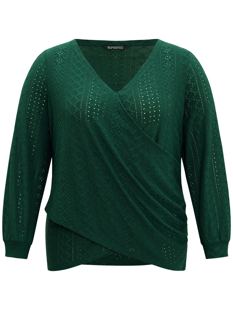 Shop Plain Elastic Cuffs Wrap Broderie Anglaise Gathered T-shirt now and redefine your style with confidence at Sweetccc. Tailored for mid and plus-size women. This trendy Tops Women. sizes 10-30. Season:Winter;Color:DarkGreen;Style:Elegant;Pattern Type:Plain;Neckline:Overlap Collar;Sleeve Type:Regular Sleeve;Details:Wrap. Elastic cuffs. Texture. Plain;Pocket:No-pocket