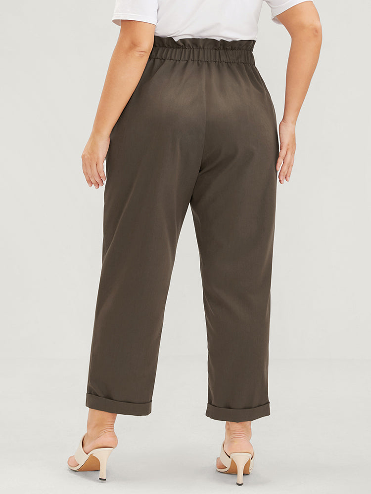 Shop Plain Elastic Waist Pocket Paperbag Waist Pants now and redefine your style with confidence at Sweetccc. Tailored for mid and plus-size women. This trendy Bottoms Women. sizes 10-30. Season:Winter;Color:DarkBrown;Waist Design:High Rise;Details:Ruffles. Pocket;Pocket:It is perfectly sized to carry a phone.;Snap Fastener:No-snap fastener;Belt:No-belt;Closure Type:Elastic Waist
