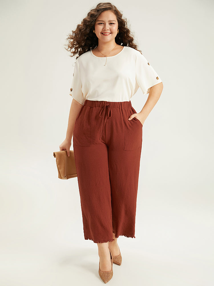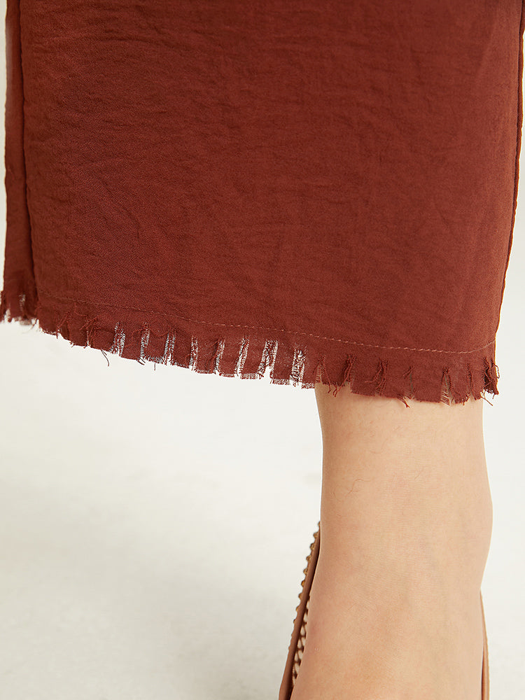 Shop Plain Frayed Hem Pocket Bowknot Pants now and redefine your style with confidence at Sweetccc. Tailored for mid and plus-size women. This trendy Bottoms Women. sizes 10-30. Season:Fall;Color:Rust;Style:Office;Waist Design:High Rise;Pattern Type:Plain;Details:Pocket. Elastic Waist. Plain. Cross straps. Tassels;Pocket:It is perfectly sized to carry a phone.;Belt:No-belt;Closure Type:Elastic Waist