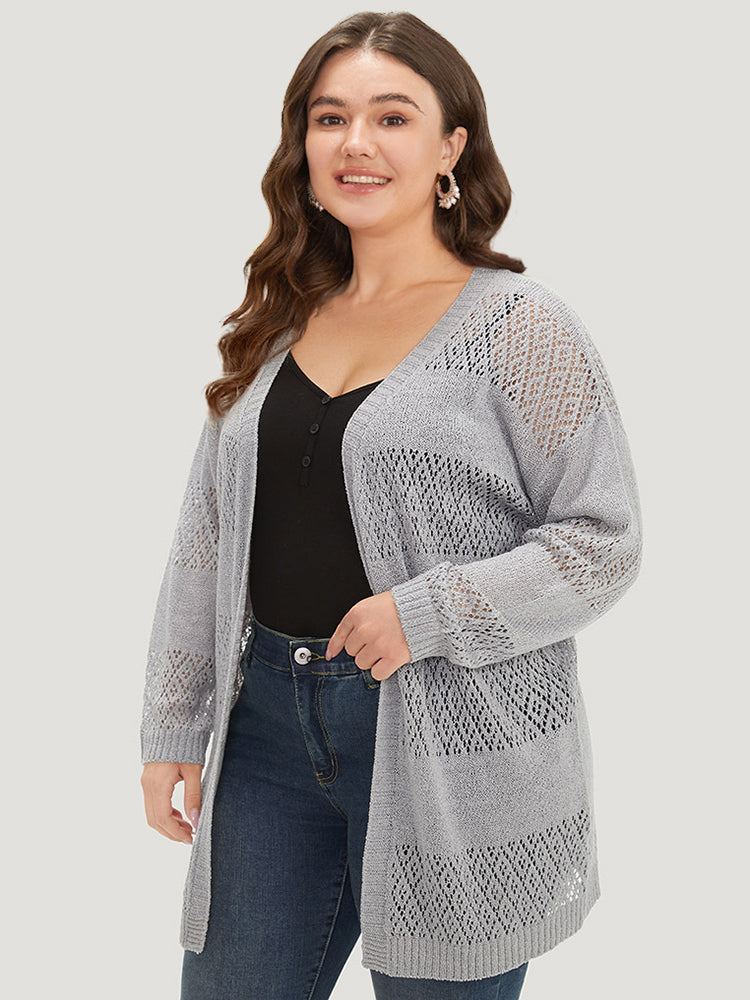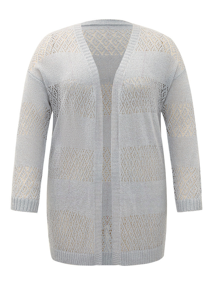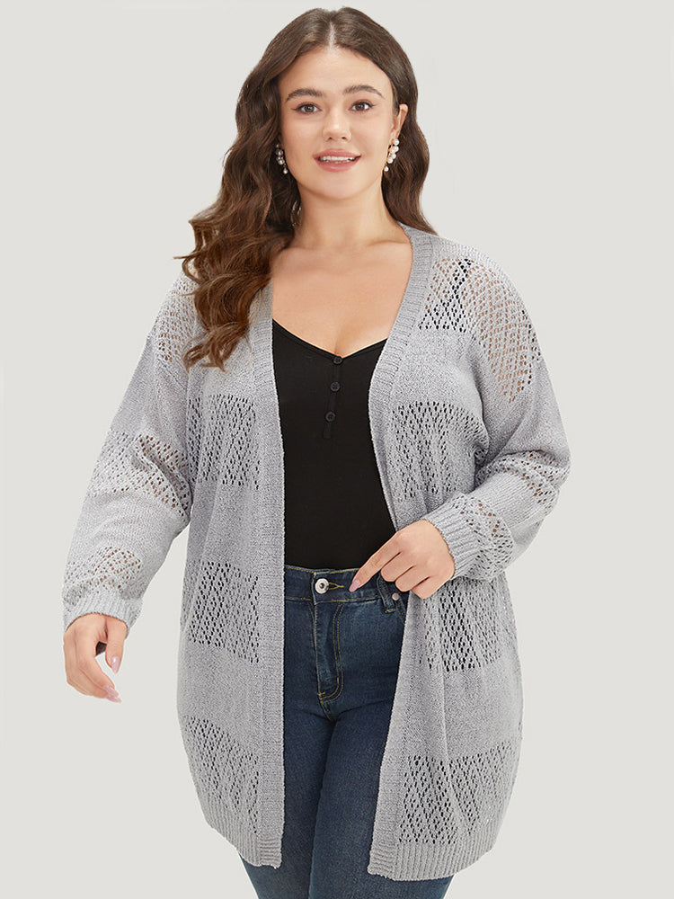Shop Plain Geometric Eyelet Open Front Cardigan now and redefine your style with confidence at Sweetccc. Tailored for mid and plus-size women. This trendy Sweaters Cardigans Women. sizes 10-30. Season:Winter;Color:DarkGray;Neckline:Open Front;Sleeve Type:Regular Sleeve;Pattern Type:Plain;Details:Cut-Out. Patchwork. Texture. Elastic cuffs;Pocket:No-pocket;Belt:No-belt