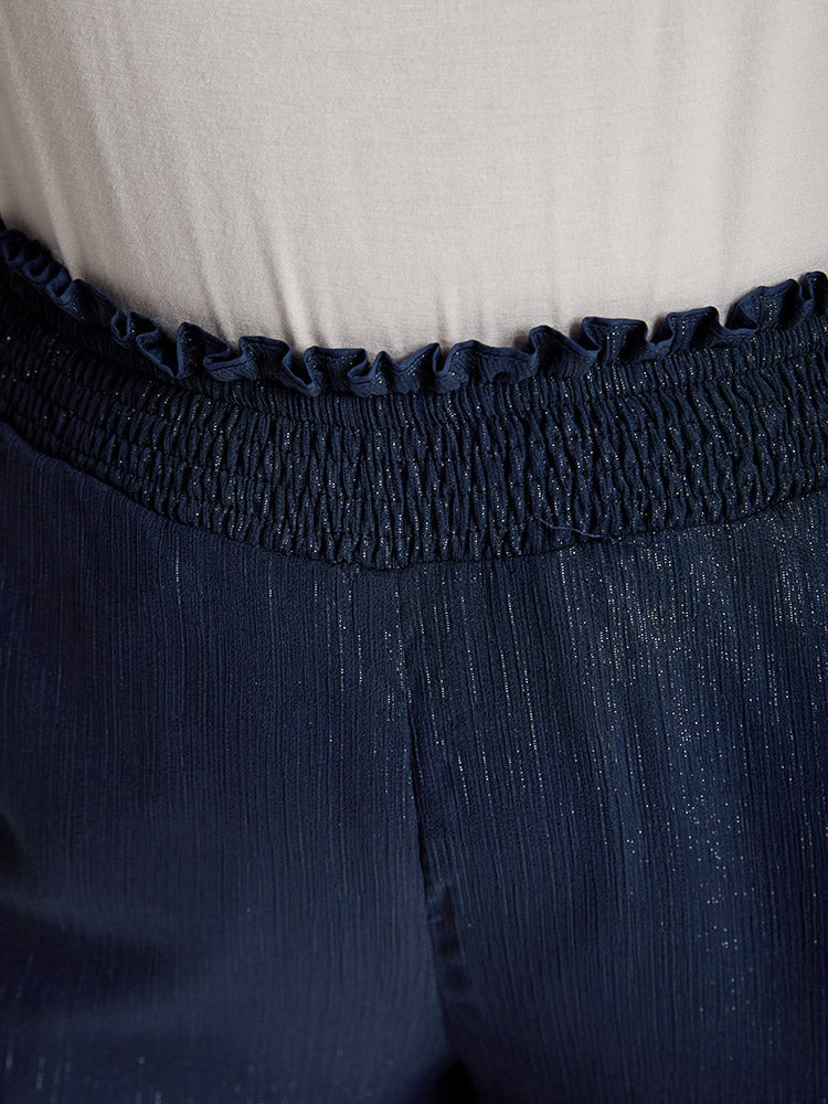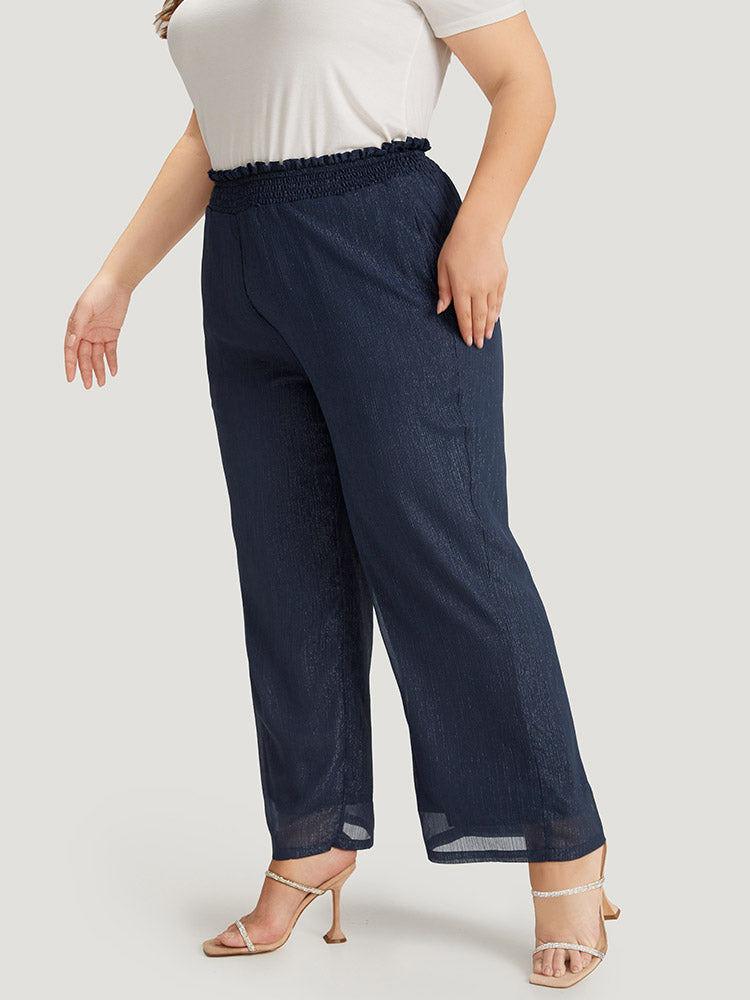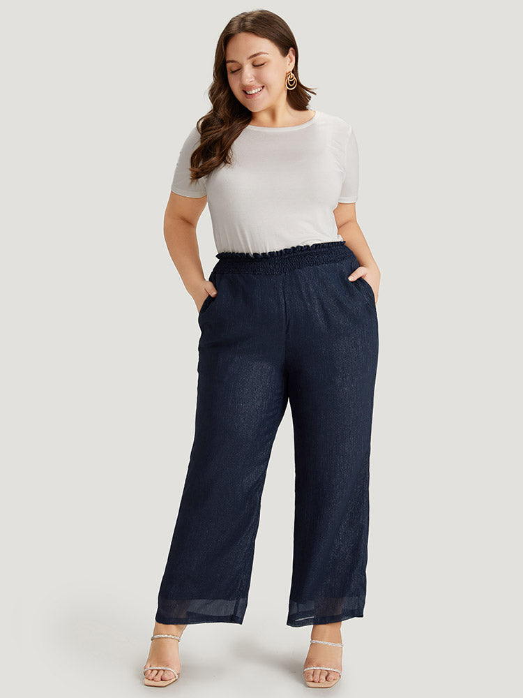 Shop Plain Glitter Shirred Waist Pocket Pants now and redefine your style with confidence at Sweetccc. Tailored for mid and plus-size women. This trendy Bottoms Women. sizes 10-30. Season:Summer;Color:Indigo;Style:Glamour;Waist Design:High Rise;Pattern Type:Plain;Details:Shirred. See through;Pocket:It is perfectly sized to carry a phone.;Belt:No-belt;Closure Type:Elastic Waist