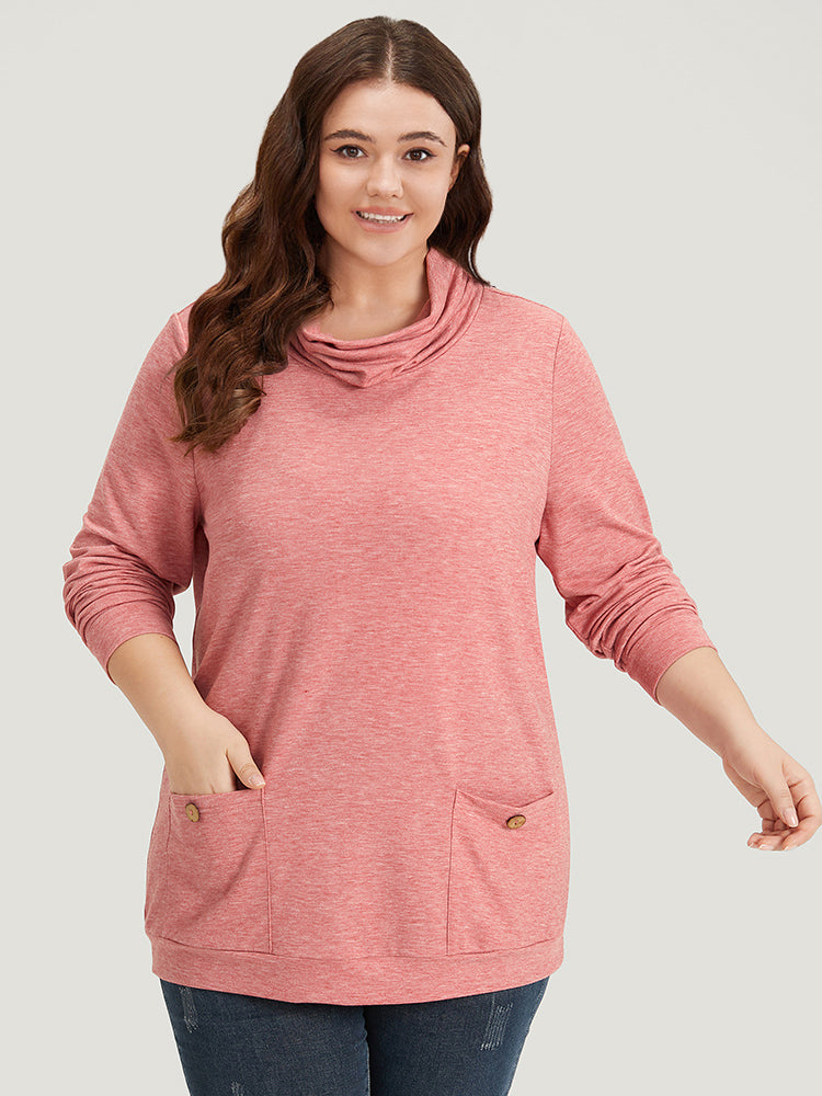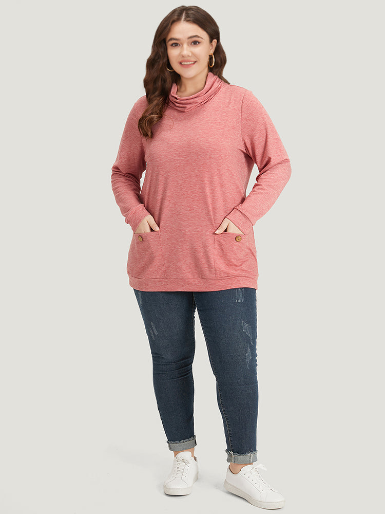 Shop Plain Heather Turtleneck Pocket Button Detail Sweatshirt now and redefine your style with confidence at Sweetccc. Tailored for mid and plus-size women. This trendy Tops Women. sizes 10-30. Season:Fall;Color:Russet;Style:Casual;Neckline:Turtleneck;Sleeve Type:Regular Sleeve;Pattern Type:Plain;Details:Pocket. Printed;Pocket:It is perfectly sized to carry a phone.;Belt:No-belt