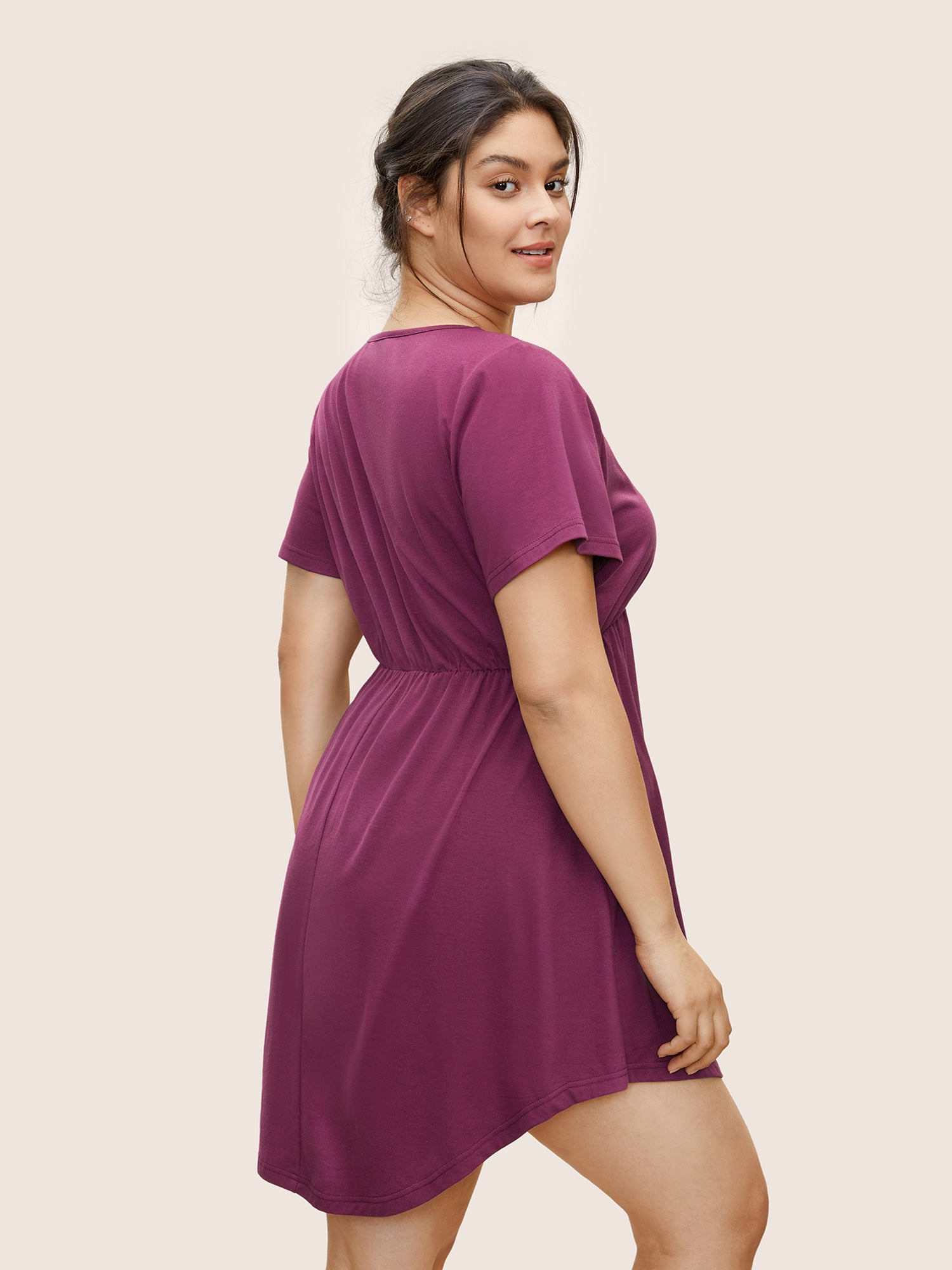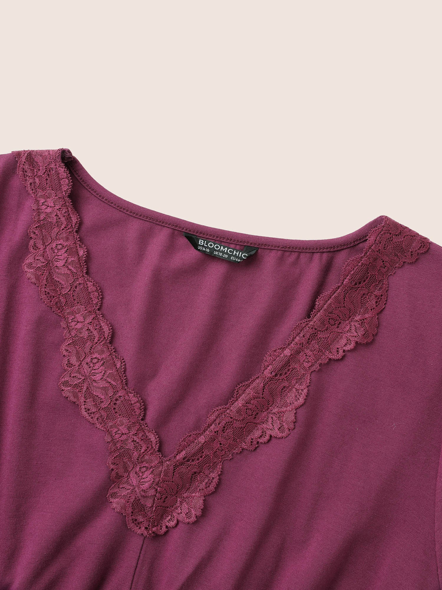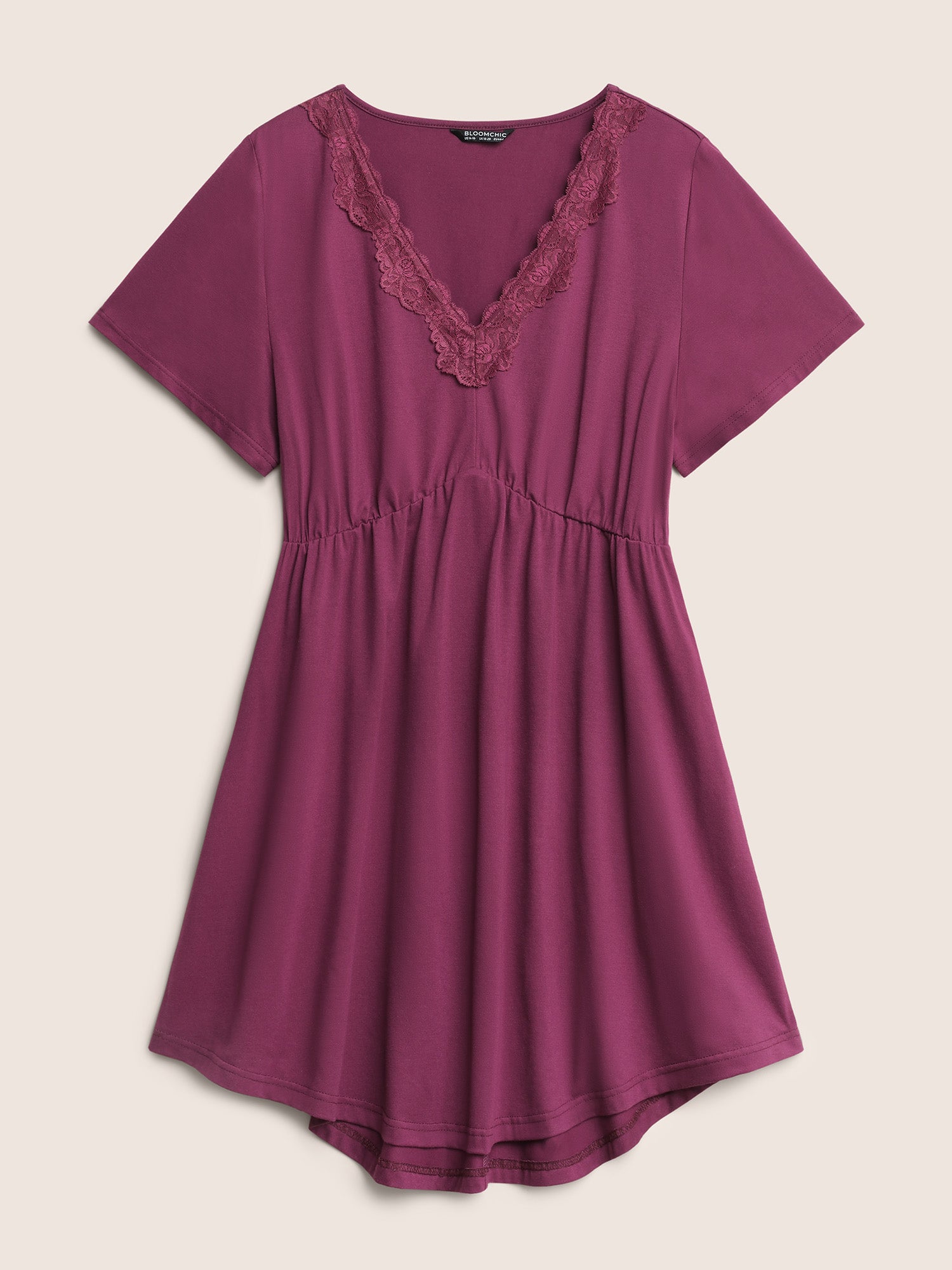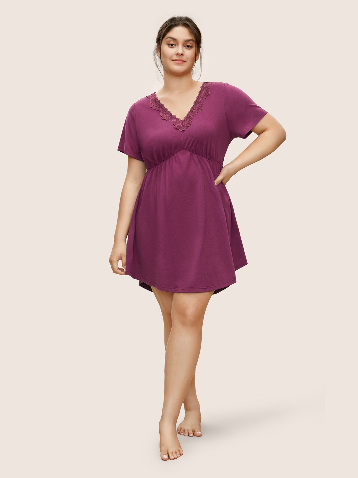Shop Plain Lace Panel Elastic Waist Curved Hem Sleep Dress now and redefine your style with confidence at Sweetccc. Tailored for mid and plus-size women. This trendy Loungewear Women. sizes 10-30. Season:Spring;Color:Burgundy;Neckline:V-neck;Sleeve Type:Regular Sleeve;Pattern Type:Plain;Pocket:No-pocket;Belt:No-belt;Closure Type:Non