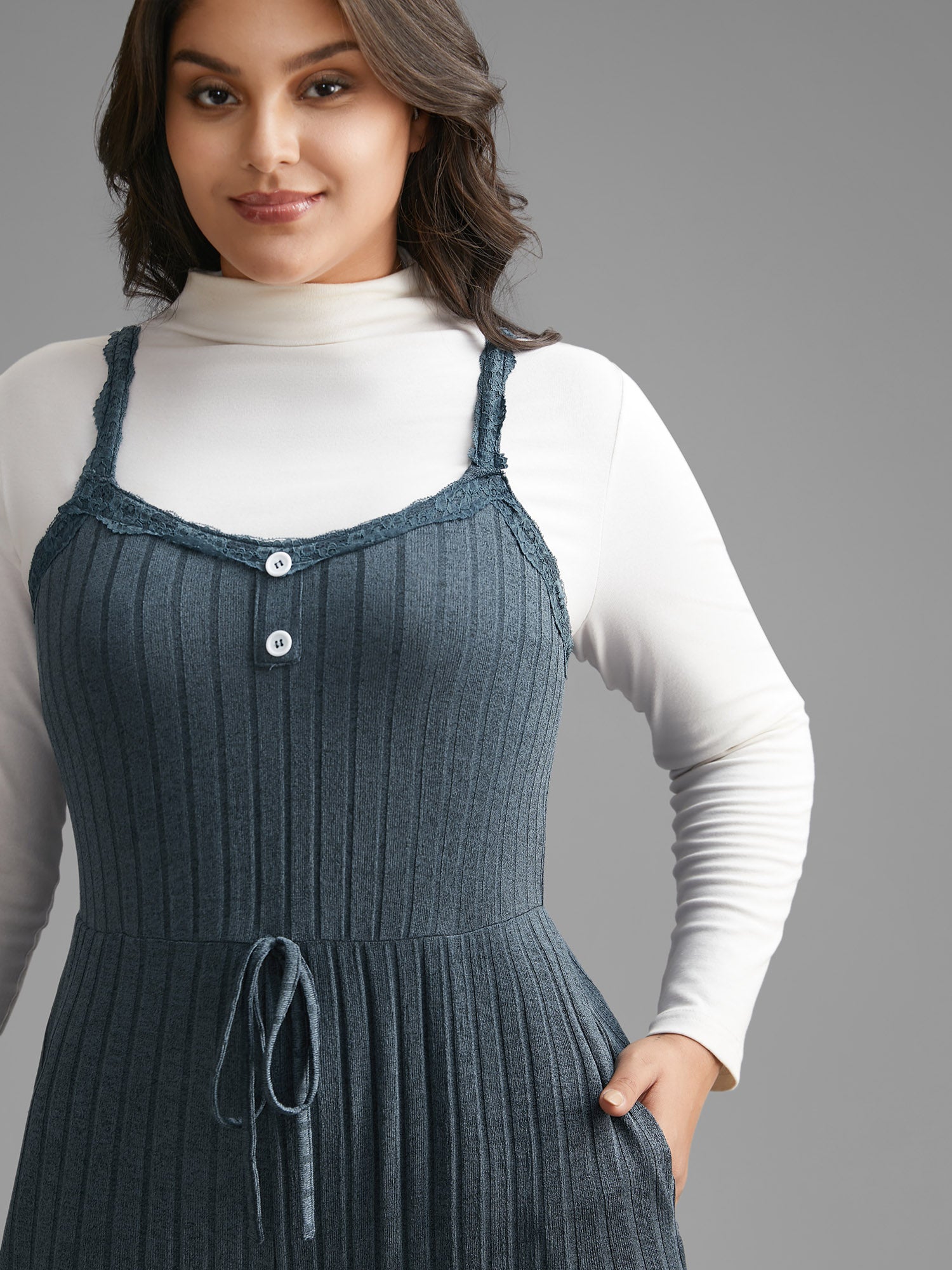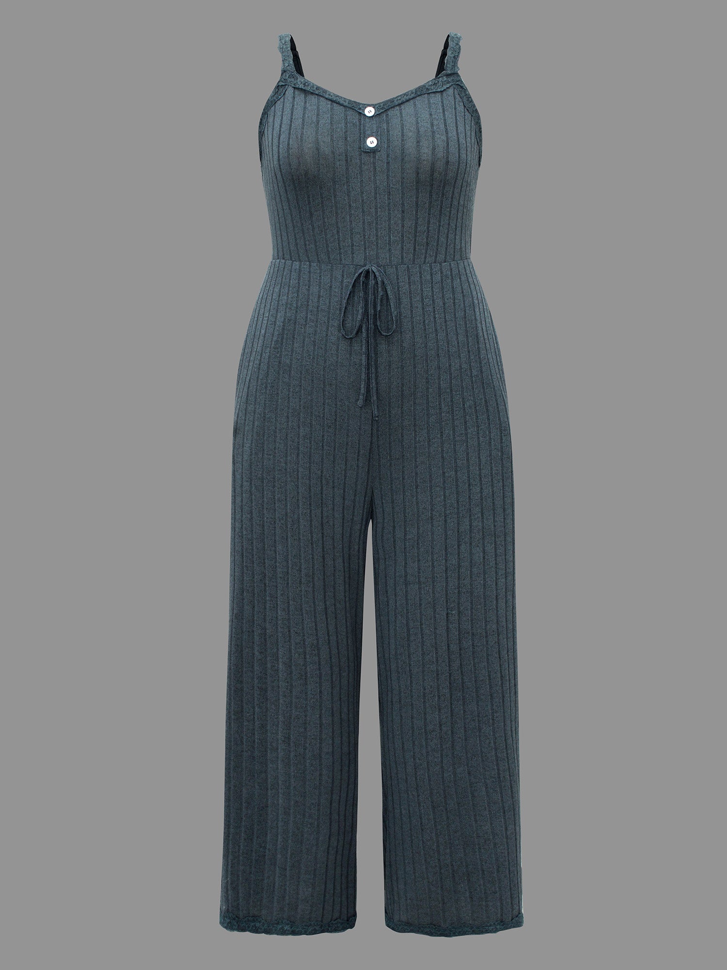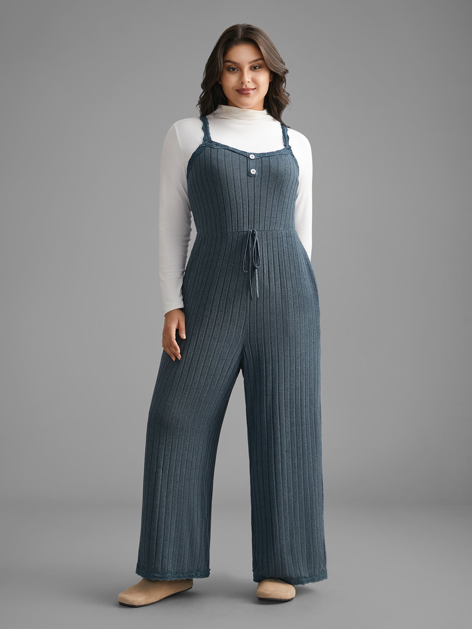 Shop Plain Lace Patchwork Tie Knot Lounge Jumpsuit now and redefine your style with confidence at Sweetccc. Tailored for mid and plus-size women. This trendy Loungewear Women. sizes 10-30. Season:Winter;Color:Aegean;Style:Lounge;Neckline:Heart neckline;Sleeve Type:Sleeveless;Prints:Non;Details:Button. Tie knot. Woven ribbon&lace trim;Pocket:Side seam pocket;Belt:No-belt;Closure Type:Non