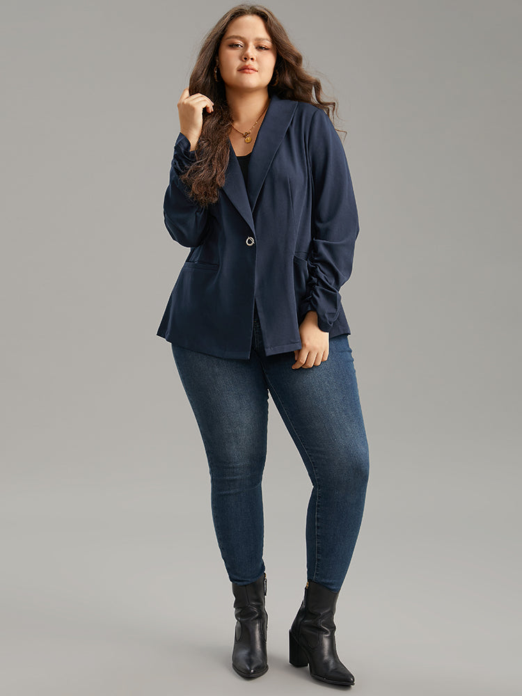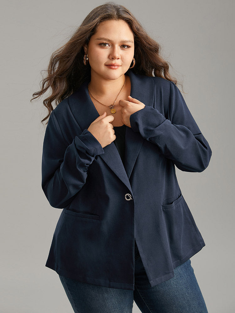 Shop Plain Lapel Collar Button Fly Patched Pocket Blazer now and redefine your style with confidence at Sweetccc. Tailored for mid and plus-size women. This trendy Outerwear Women. sizes 10-30. Season:Winter;Color:Midnight;Style:Casual;Neckline:Lapel Collar;Sleeve Type:Regular Sleeve;Pattern Type:Plain;Details:Button. Plain. Pocket;Pocket:It is perfectly sized to carry a phone.;Belt:No-belt;Closure Type:Button;Lining:No-lining