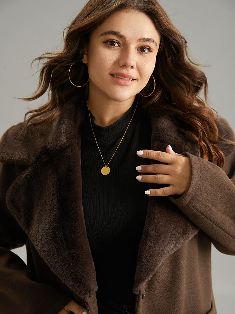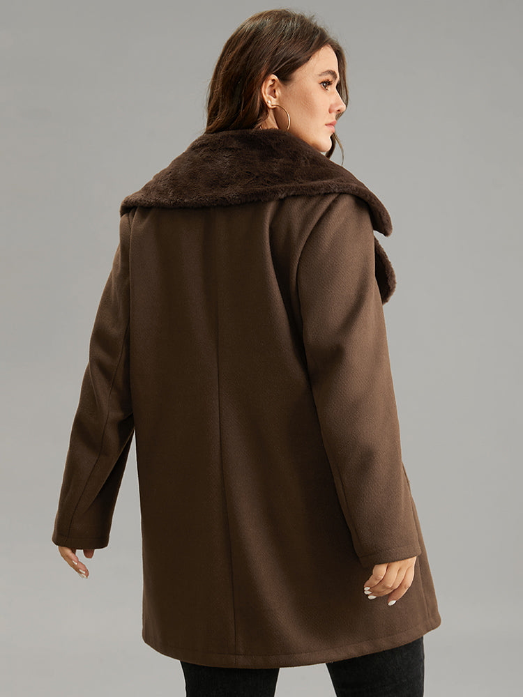 Shop Plain Lapel Collar Fuzzy Trim Patchwork Button Up Coat now and redefine your style with confidence at Sweetccc. Tailored for mid and plus-size women. This trendy Outerwear Women. sizes 10-30. Season:Winter;Color:DarkBrown;Style:Casual;Pattern Type:Plain;Details:Pocket. Patchwork. Lined;Pocket:It is perfectly sized to carry a phone.;Belt:No-belt;Closure Type:Button;Lining:Lining