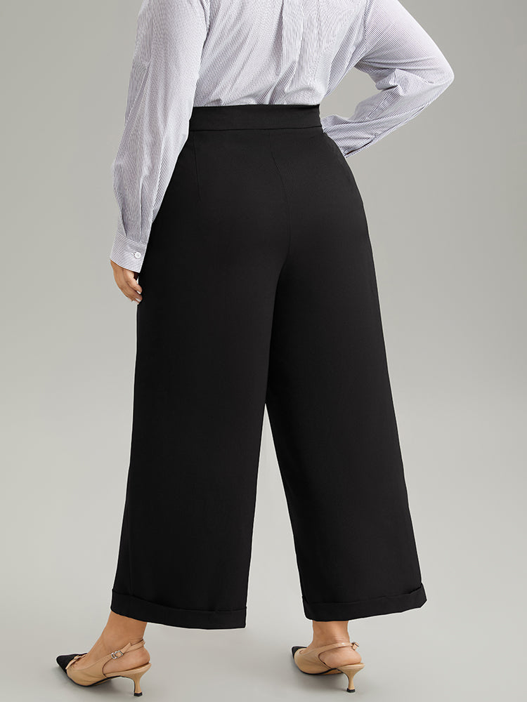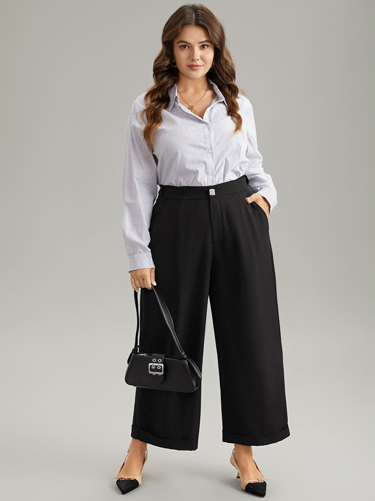 Shop Plain Metal Detail Pocket Wide Leg Pants now and redefine your style with confidence at Sweetccc. Tailored for mid and plus-size women. This trendy Bottoms Women. sizes 10-30. Season:Winter;Color:Black;Style:Office;Waist Design:High Rise;Pattern Type:Plain;Details:Button. Pocket. Elastic Waist. Plain;Pocket:It is perfectly sized to carry a phone.;Belt:No-belt;Closure Type:Button
